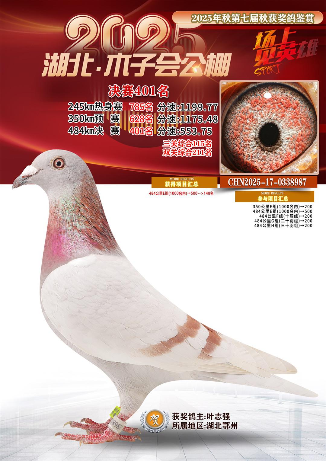 位置:湖北省木子会公棚2025获奖鸽展示\决赛401名