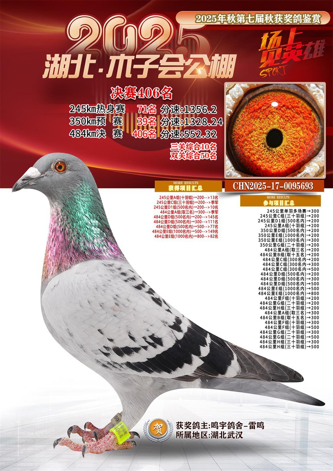 位置:湖北省木子会公棚2025获奖鸽展示\决赛406名