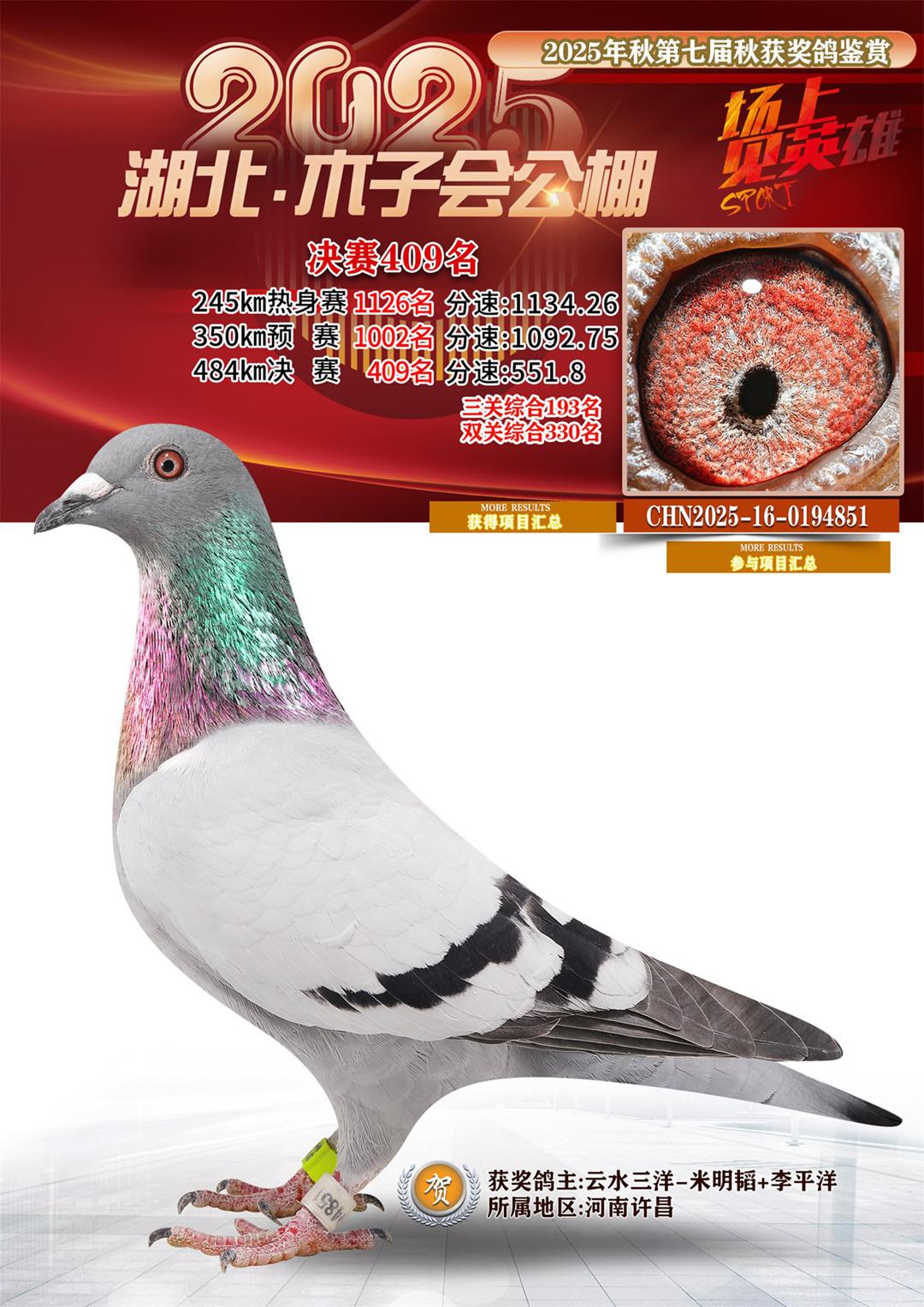 位置:湖北省木子会公棚2025获奖鸽展示\决赛409名