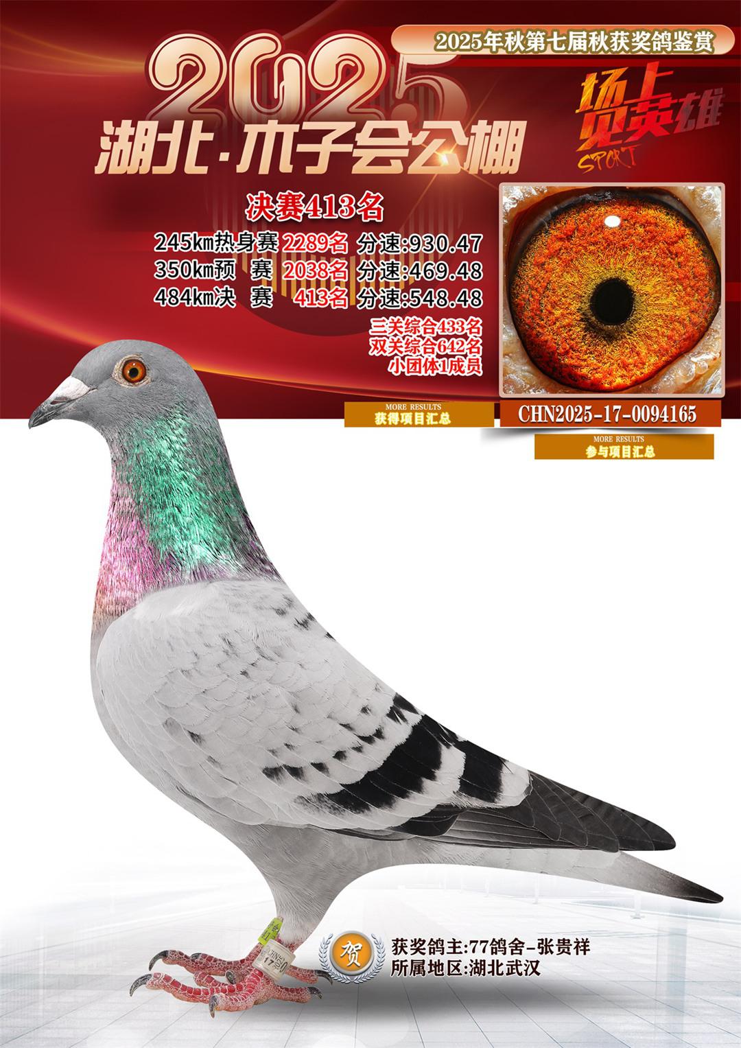 位置:湖北省木子会公棚2025获奖鸽展示\决赛413名