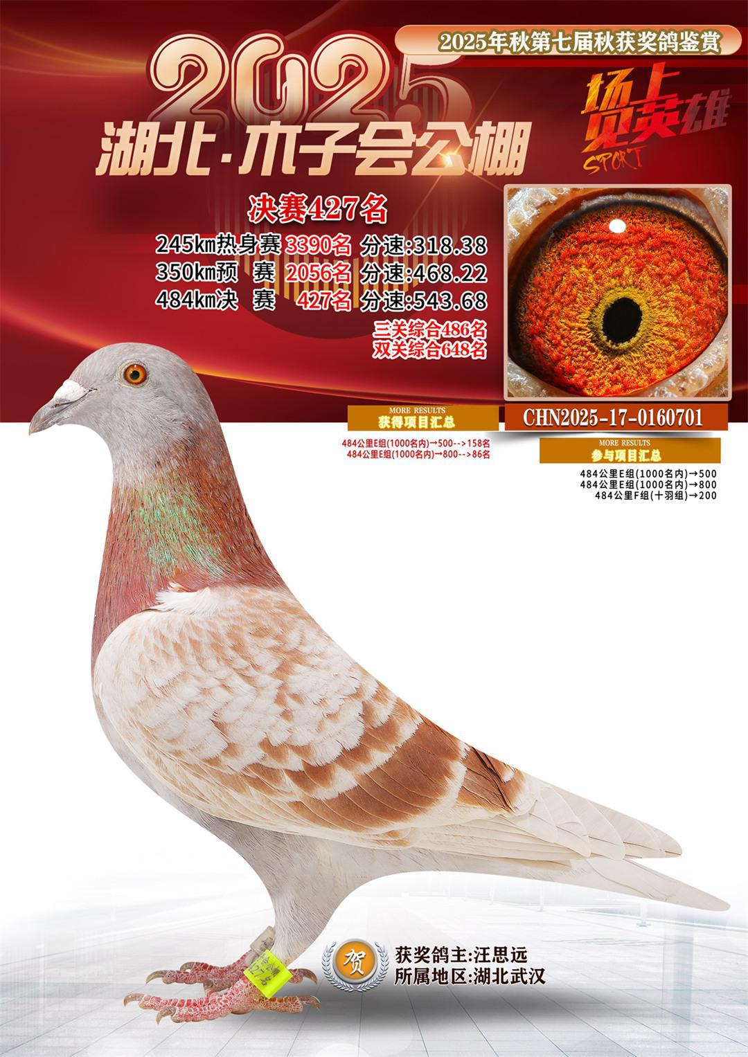 位置:湖北省木子会公棚2025获奖鸽展示\决赛427名