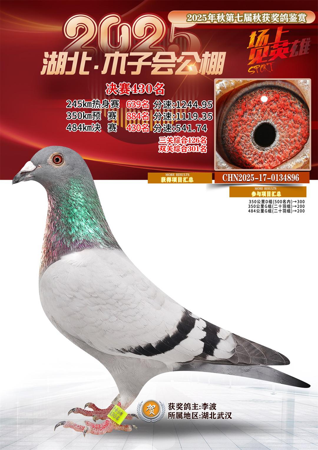 位置:湖北省木子会公棚2025获奖鸽展示\决赛430名