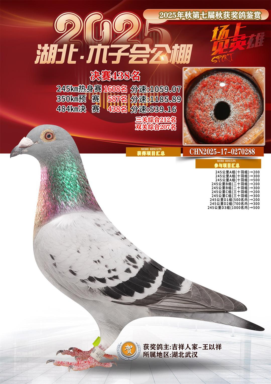 位置:湖北省木子会公棚2025获奖鸽展示\决赛438名