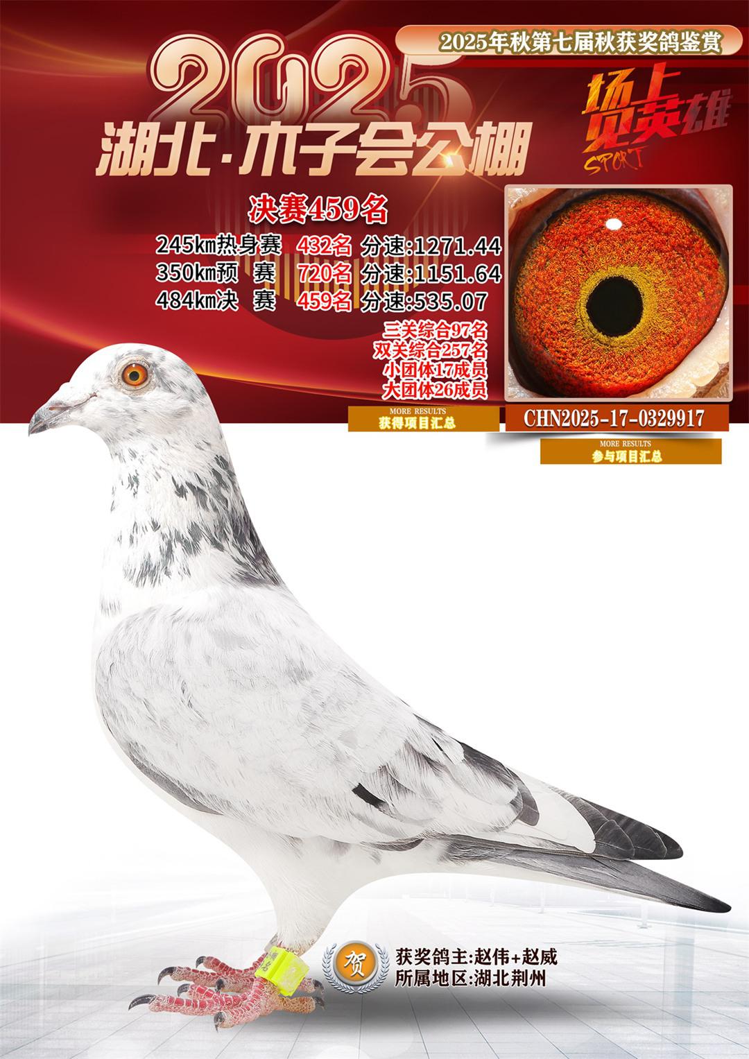 位置:湖北省木子会公棚2025获奖鸽展示\决赛459名