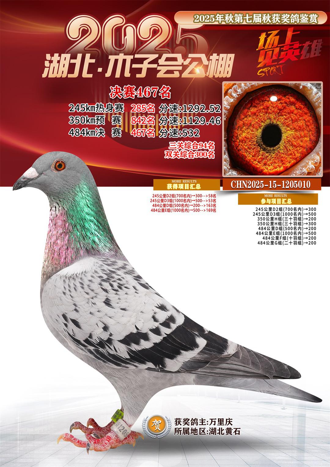 位置:湖北省木子会公棚2025获奖鸽展示\决赛467名