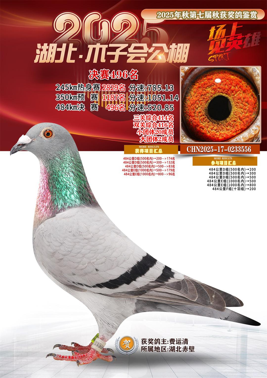 位置:湖北省木子会公棚2025获奖鸽展示\决赛496名