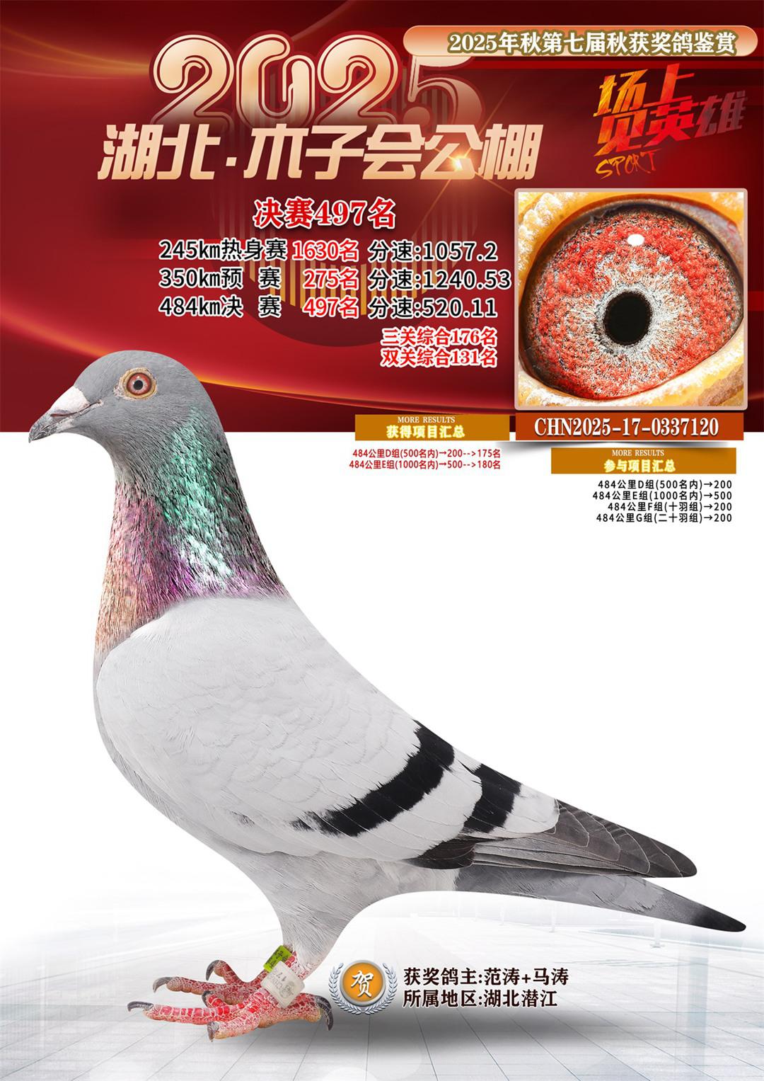 位置:湖北省木子会公棚2025获奖鸽展示\决赛497名