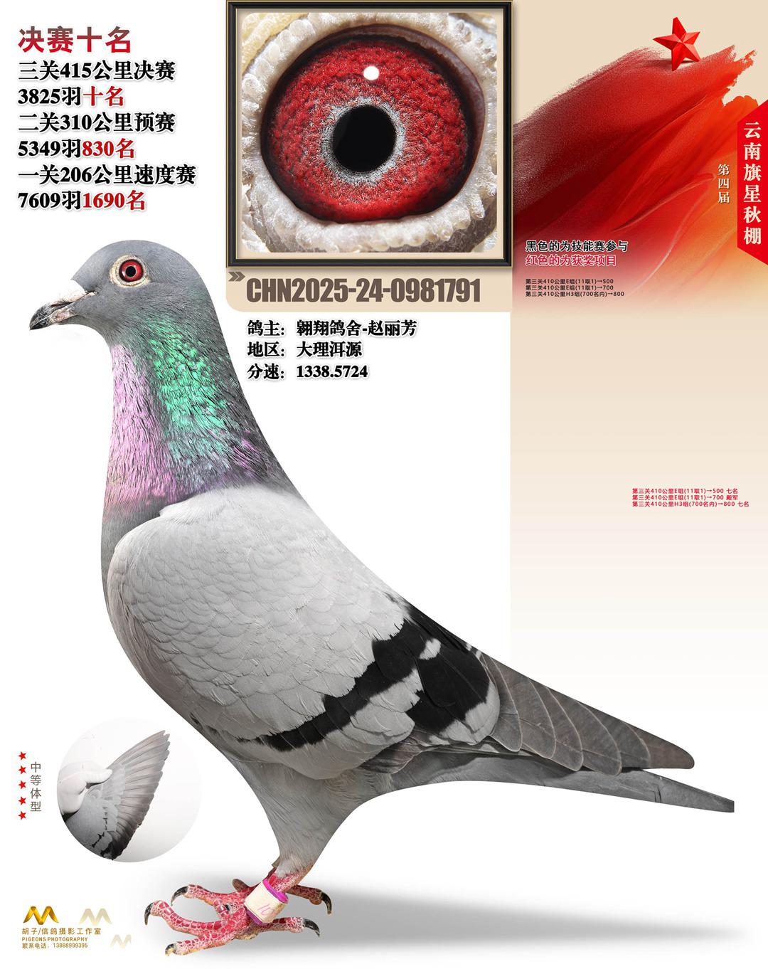 云南大理旗星赛鸽中心2025决赛10名翱翔鸽舍-赵丽芳24-0981791大理洱源获奖鸽展示!