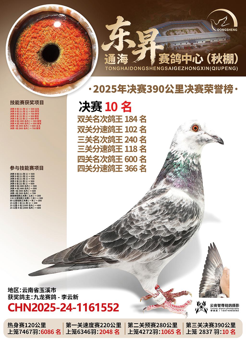 通海东昇赛鸽中心2025决赛10名九龙赛鸽-李云新CHN2025-24-1161552云南省玉溪市获奖鸽展示!