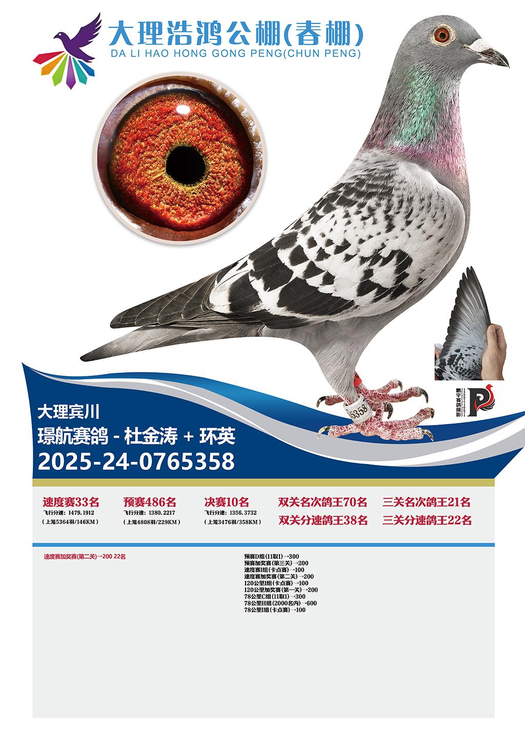 大理浩鸿公棚春棚2026决赛10名璟航赛鸽-杜金涛+环英2025-24-0765358大理宾川获奖鸽展示!