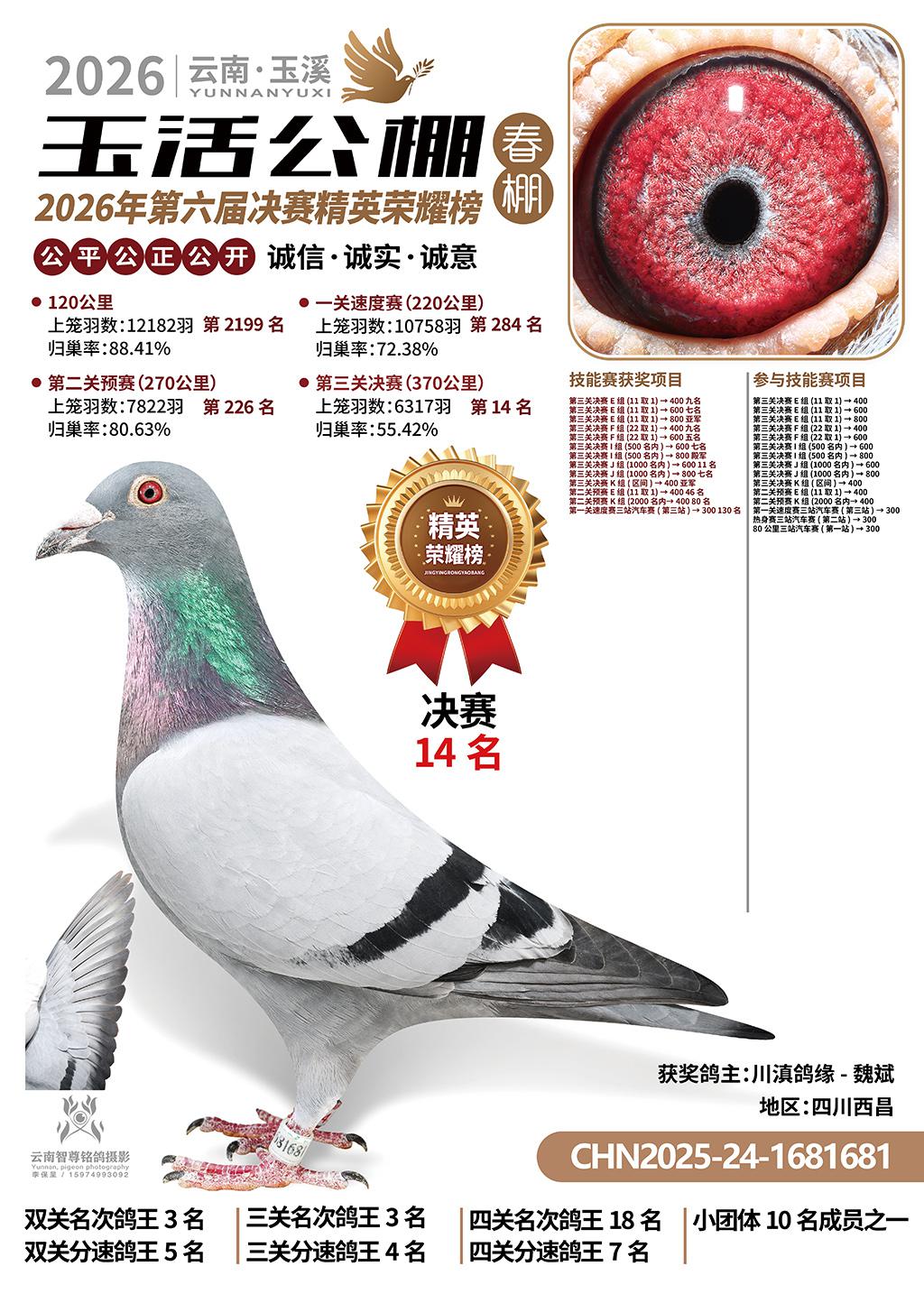 云南玉活公棚春棚2026决赛14名川滇鸽缘-魏斌2025-24-1681681四川西昌获奖鸽展示!