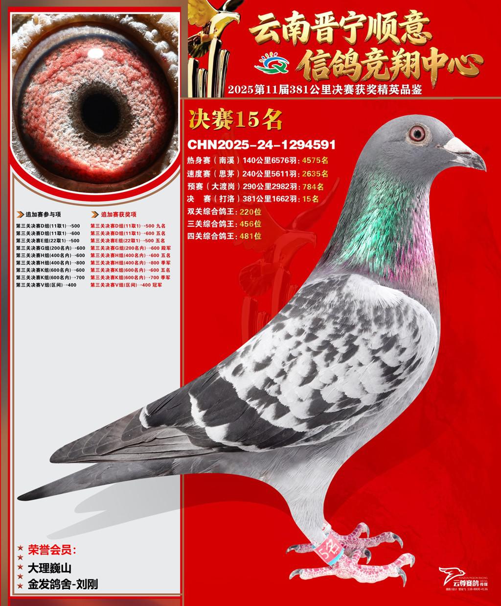 云南晋宁顺意信鸽竞翔中心2025决赛15名金发鸽舍-刘刚2025-24-1294591大理巍山获奖鸽展示!