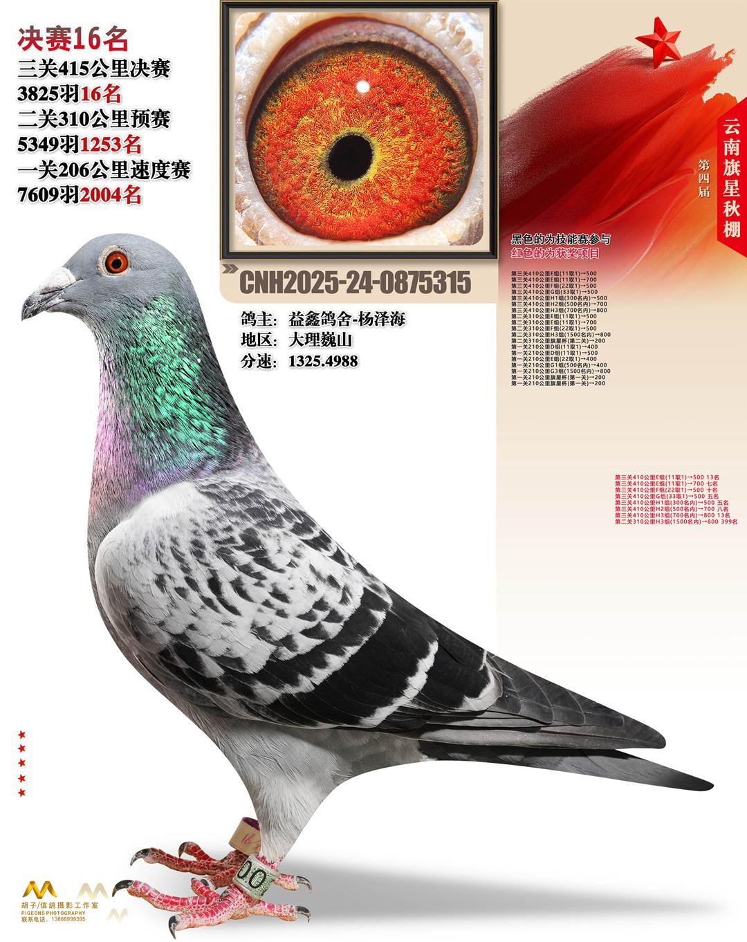 云南大理旗星赛鸽中心2025决赛16名益鑫鸽舍-杨泽海24-0875315大理巍山获奖鸽展示!