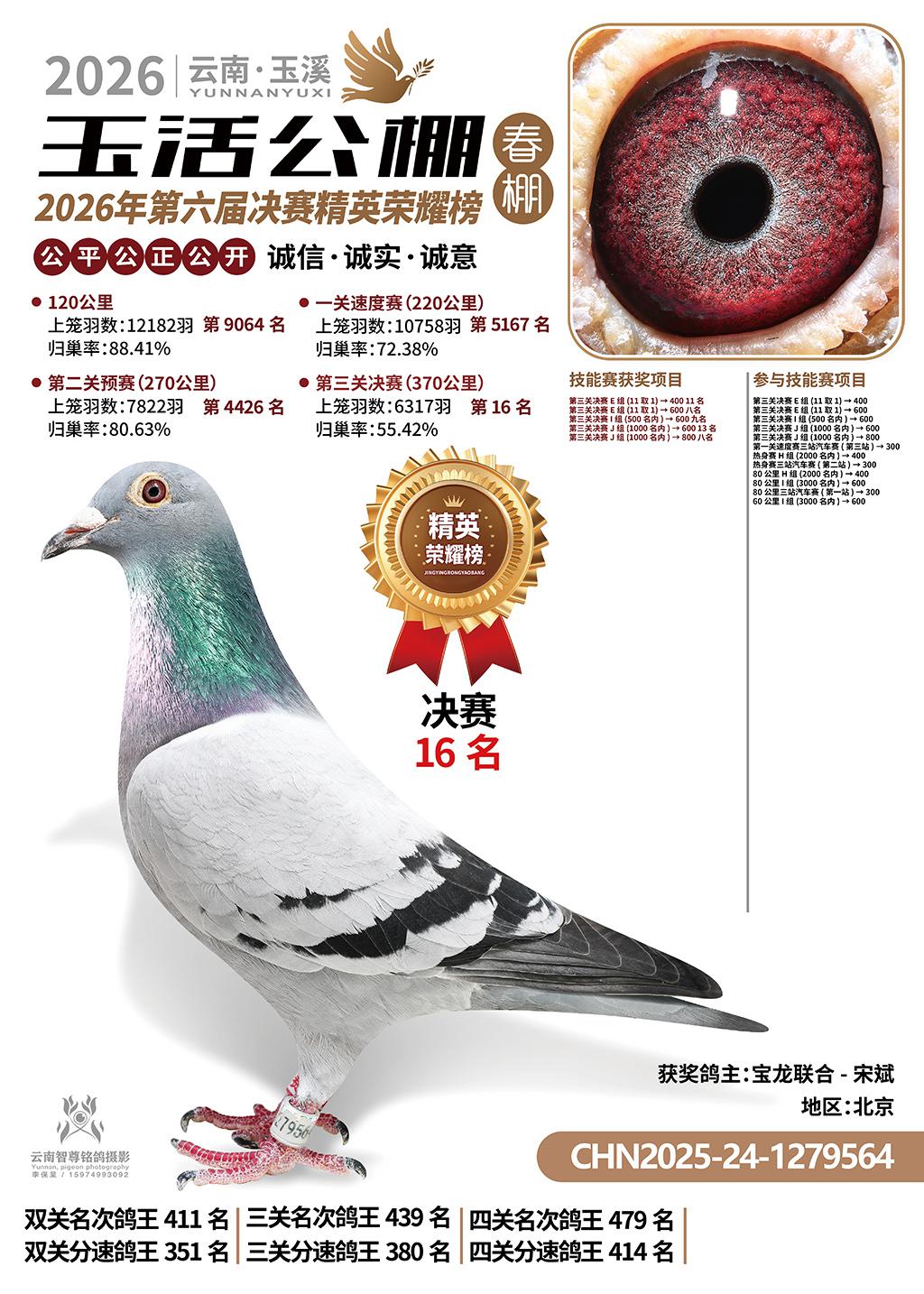 云南玉活公棚春棚2026决赛16名宝龙联合-宋斌2025-24-1279564北京获奖鸽展示!
