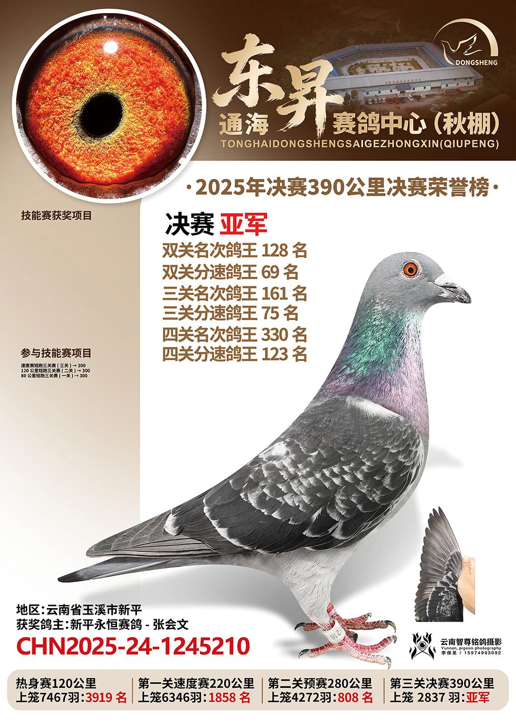 通海东昇赛鸽中心2025决赛2名新平永恒赛鸽-张会文CHN2025-24-1245210云南省玉溪市新平获奖鸽展示!