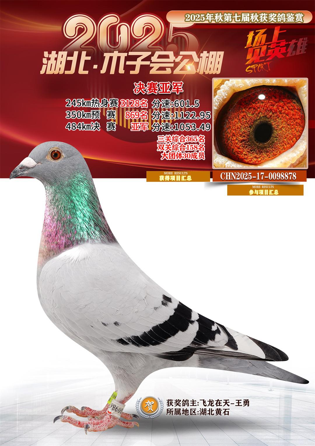 湖北省木子会公棚2025决赛2名飞龙在天-王勇17-0098878湖北黄石获奖鸽展示!