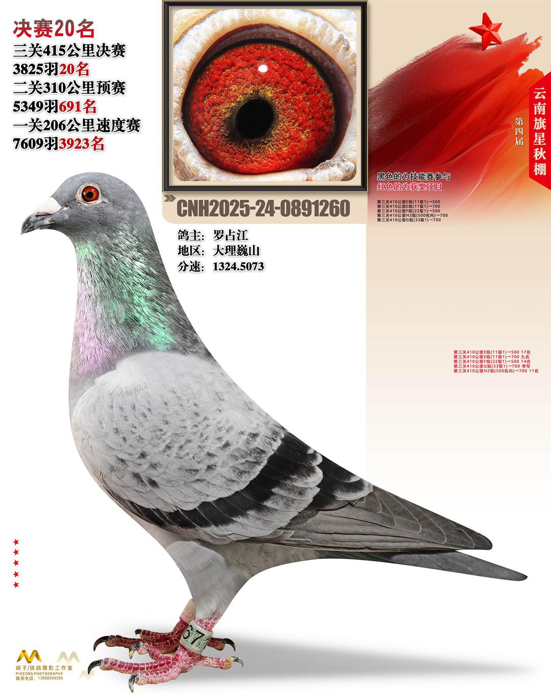 云南大理旗星赛鸽中心2025决赛20名罗占江24-0891260大理巍山获奖鸽展示!