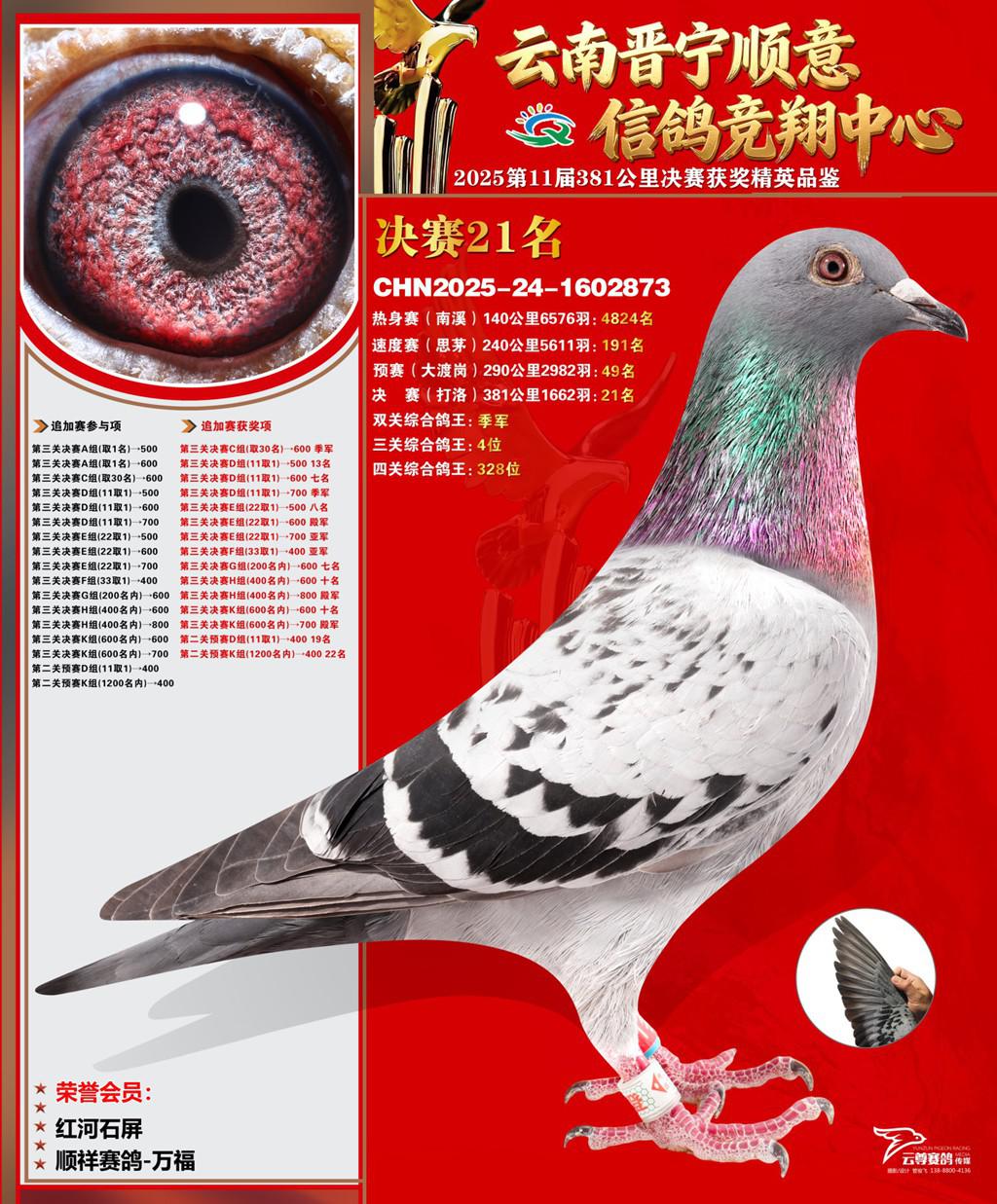 云南晋宁顺意信鸽竞翔中心2025决赛21名顺祥赛鸽-万福2025-24-1602873红河石屏获奖鸽展示!