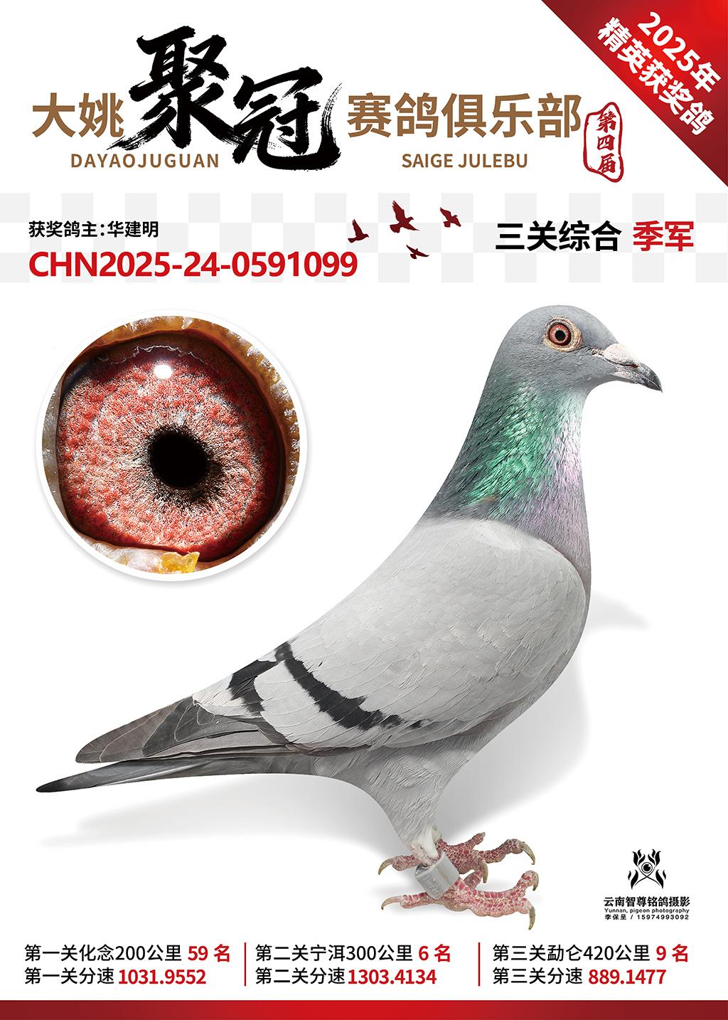 大姚聚冠赛鸽寄养棚2025综合3名华建明2025-24-0591099获奖鸽展示!