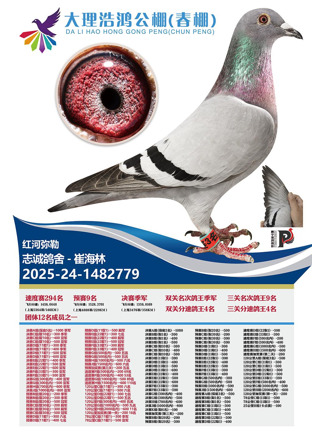 大理浩鸿公棚春棚2026决赛3名志诚鸽舍-崔海林2025-24-1482779红河弥勒获奖鸽展示!