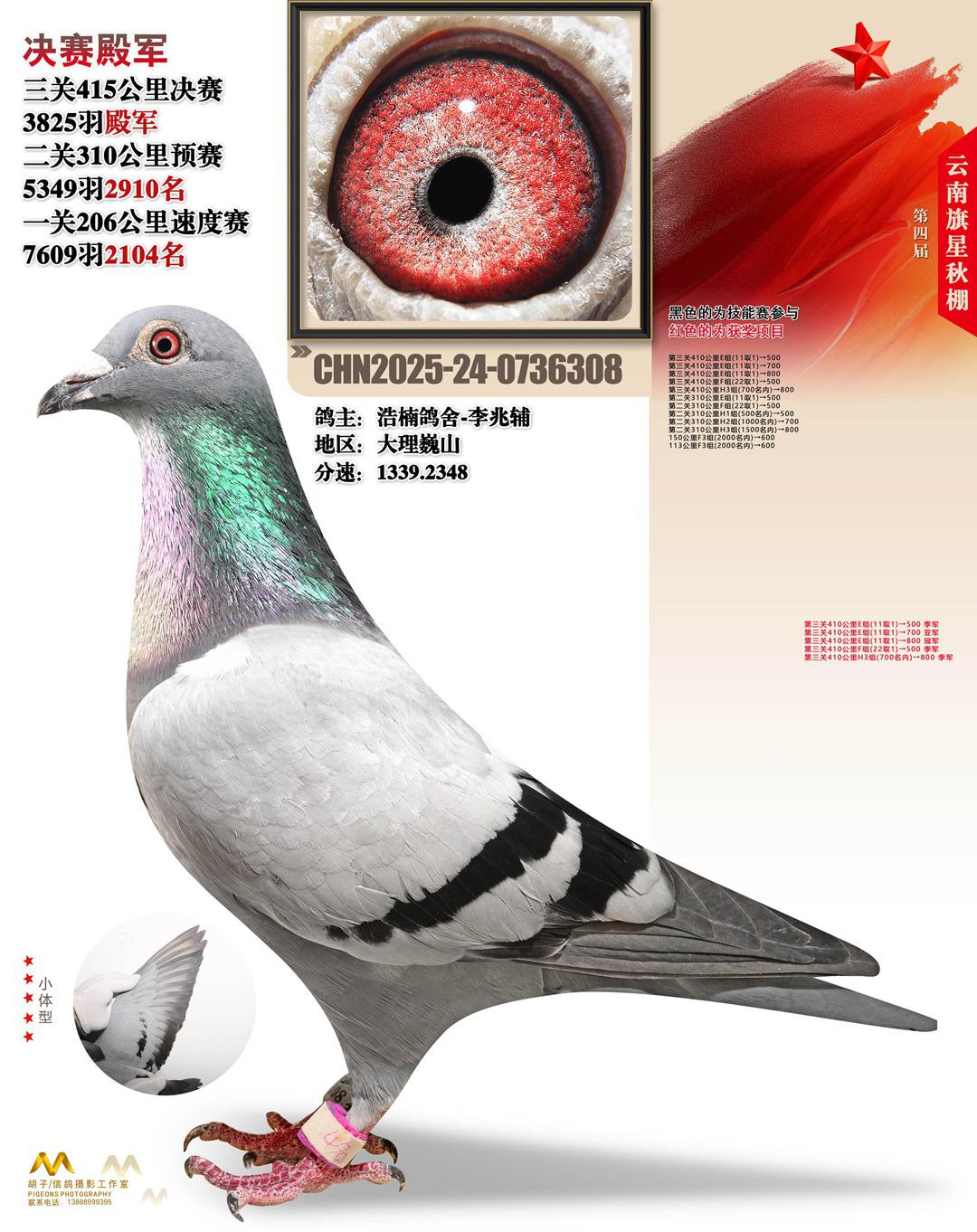 云南大理旗星赛鸽中心2025决赛4名浩楠鸽舍-李兆辅24-0736308大理巍山获奖鸽展示!