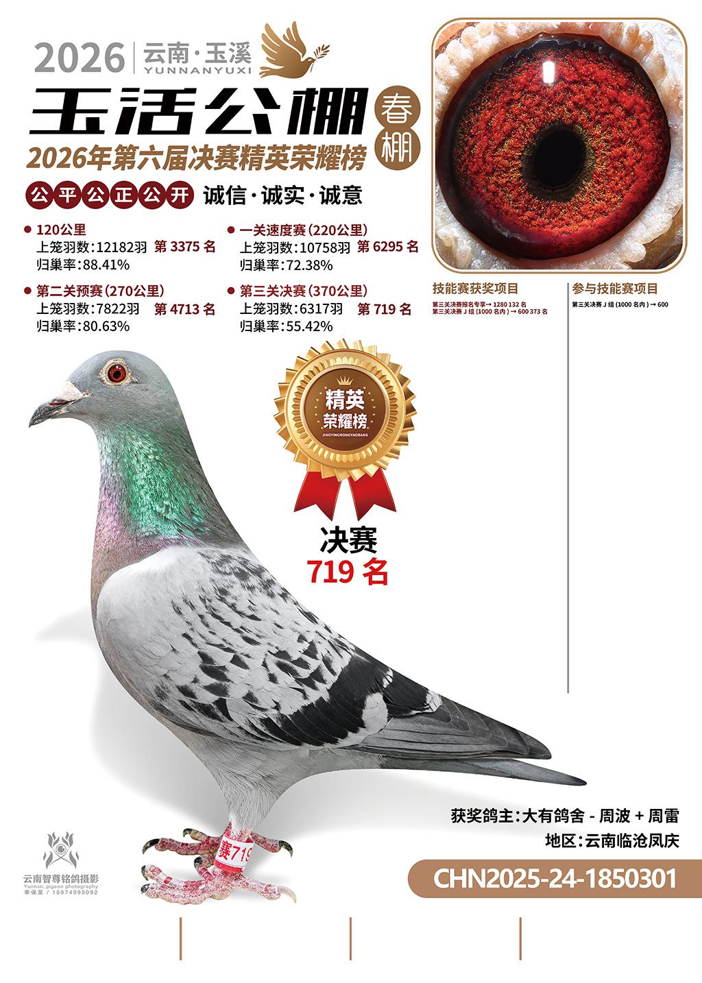 云南玉活公棚春棚2026决赛719名大有鸽舍-周波+周雷2025-24-1850301云南临沧凤庆获奖鸽展示!