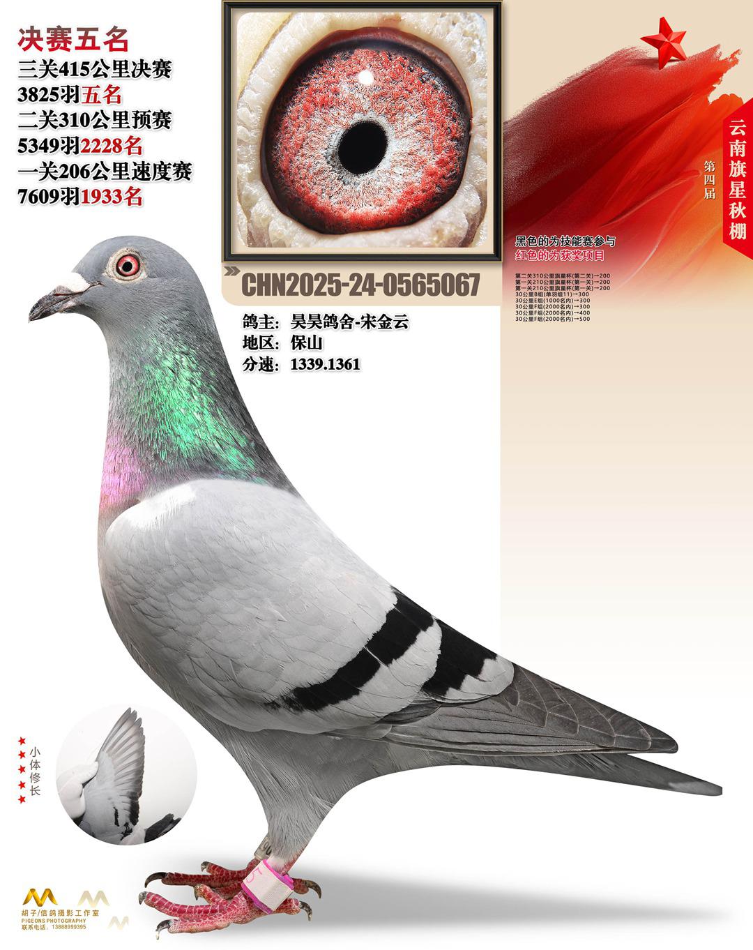 云南大理旗星赛鸽中心2025决赛5名昊昊鸽舍-宋金云24-0565067保山获奖鸽展示!