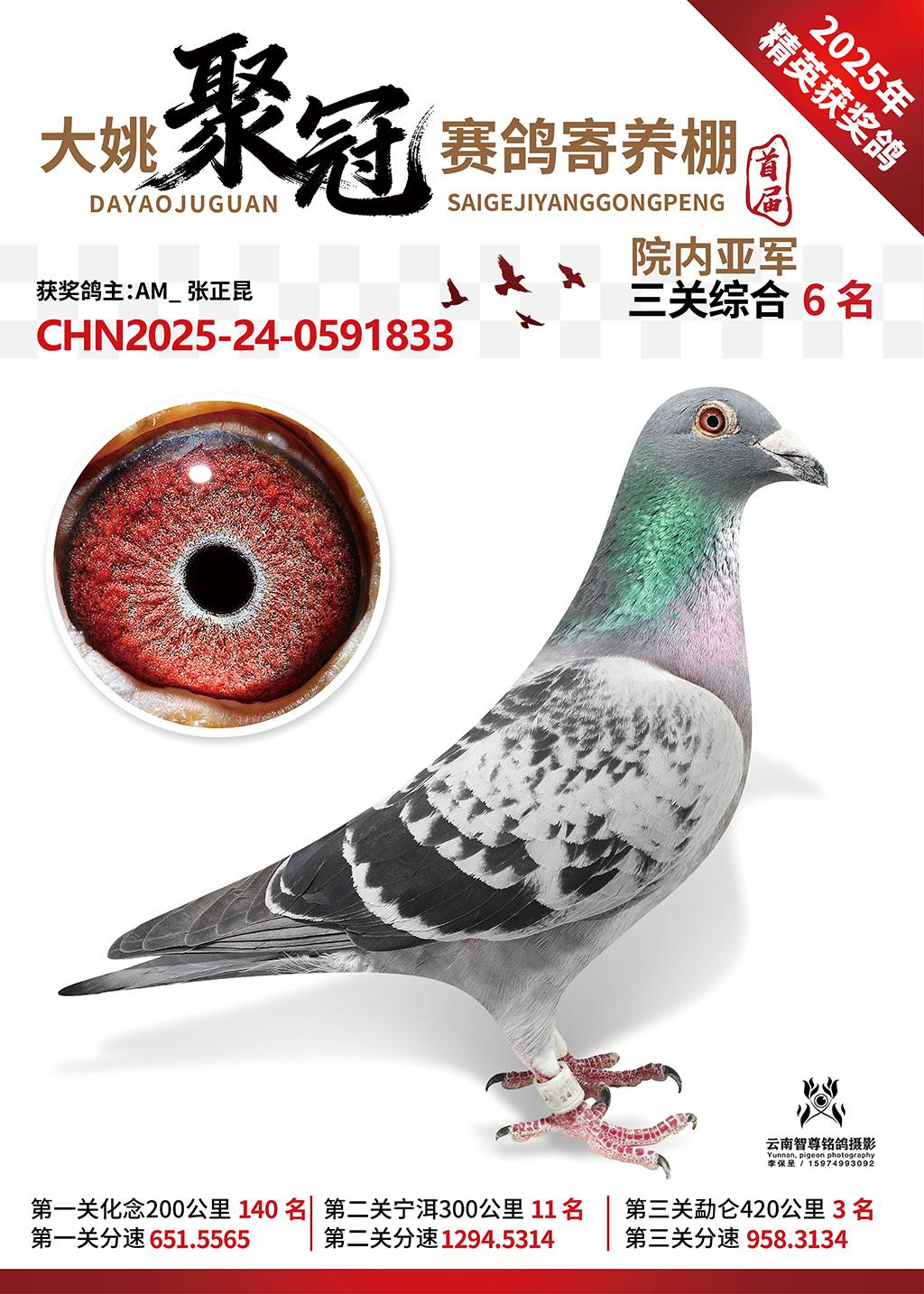 大姚聚冠赛鸽寄养棚2025综合6名AM_张正昆2025-24-0591833获奖鸽展示!