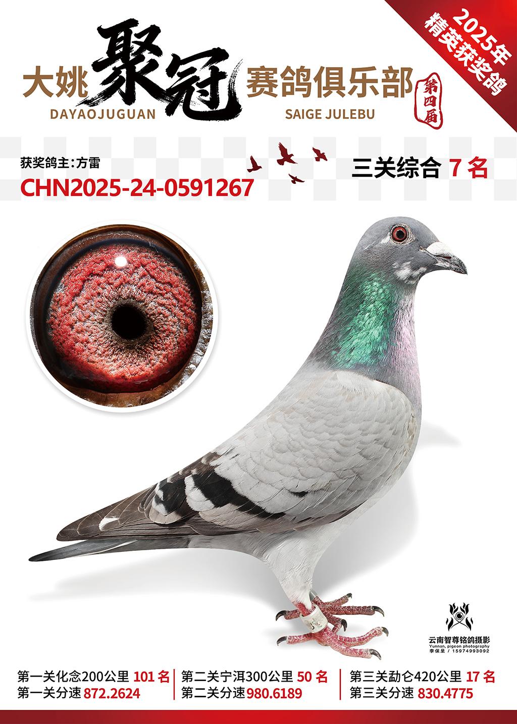 大姚聚冠赛鸽寄养棚2025综合7名方雷2025-24-0591267获奖鸽展示!