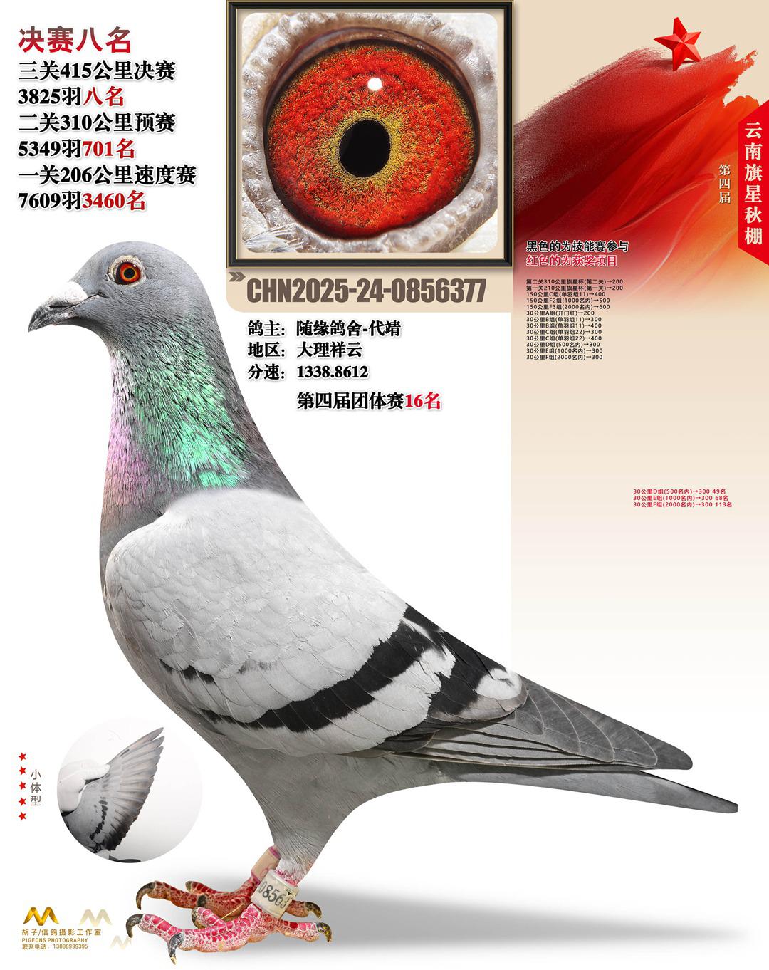 云南大理旗星赛鸽中心2025决赛8名随缘鸽舍-代靖24-0856377大理祥云获奖鸽展示!