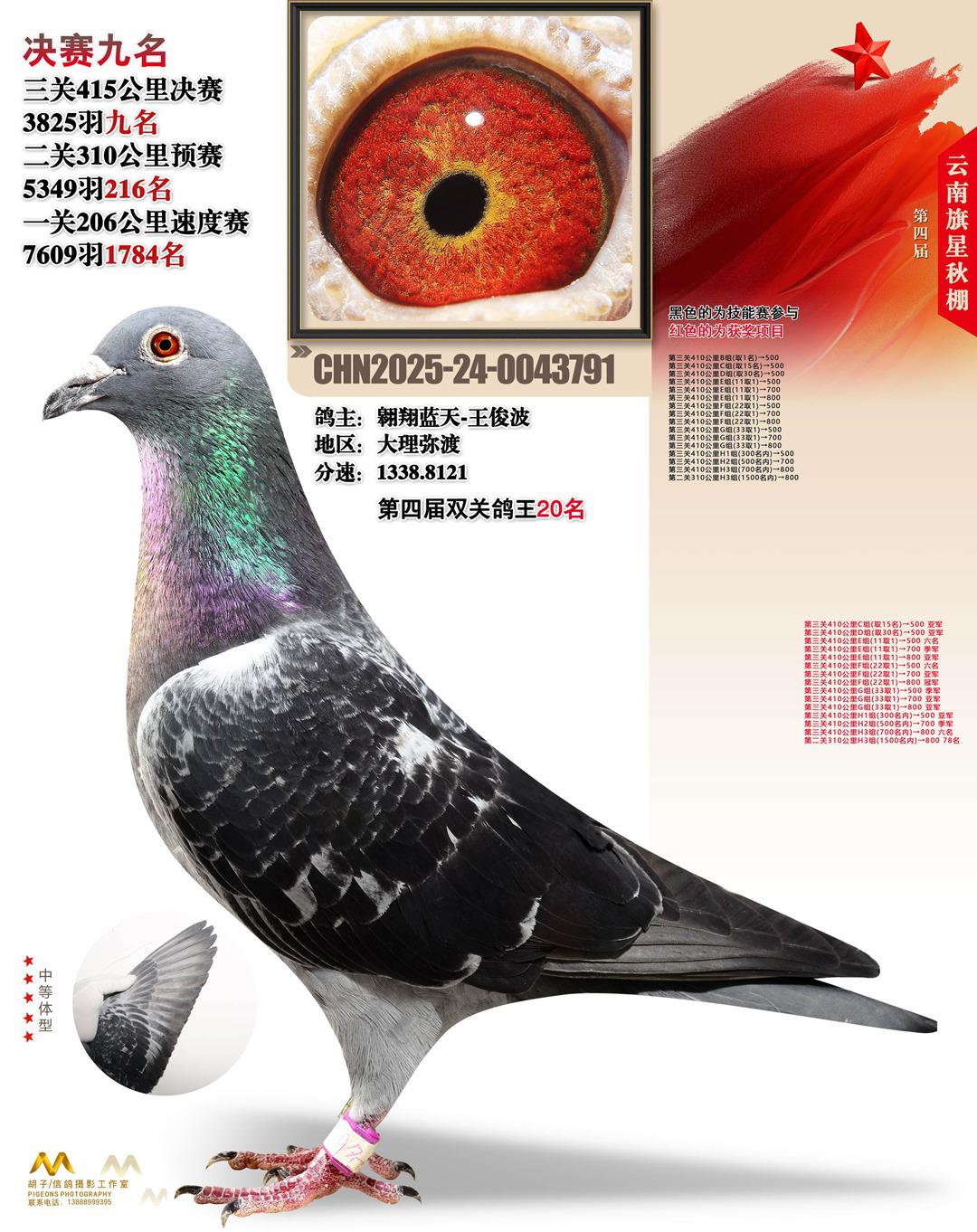 云南大理旗星赛鸽中心2025决赛9名翱翔蓝天-王俊波24-0043791大理弥渡获奖鸽展示!