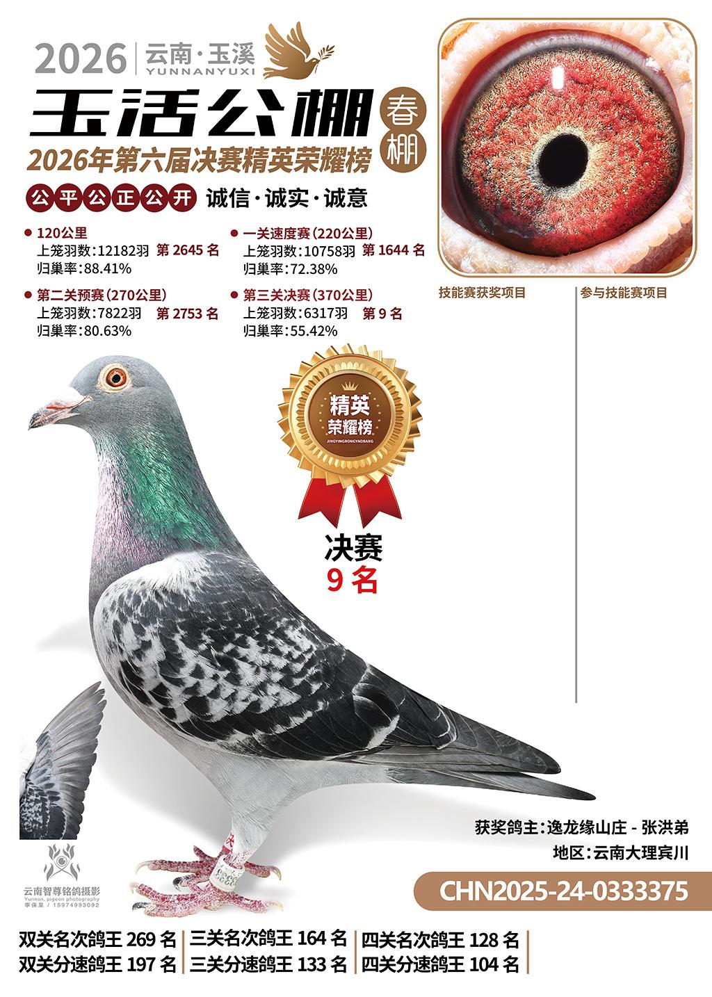 云南玉活公棚春棚2026决赛9名逸龙缘山庄-张洪弟2025-24-0333375云南大理宾川获奖鸽展示!