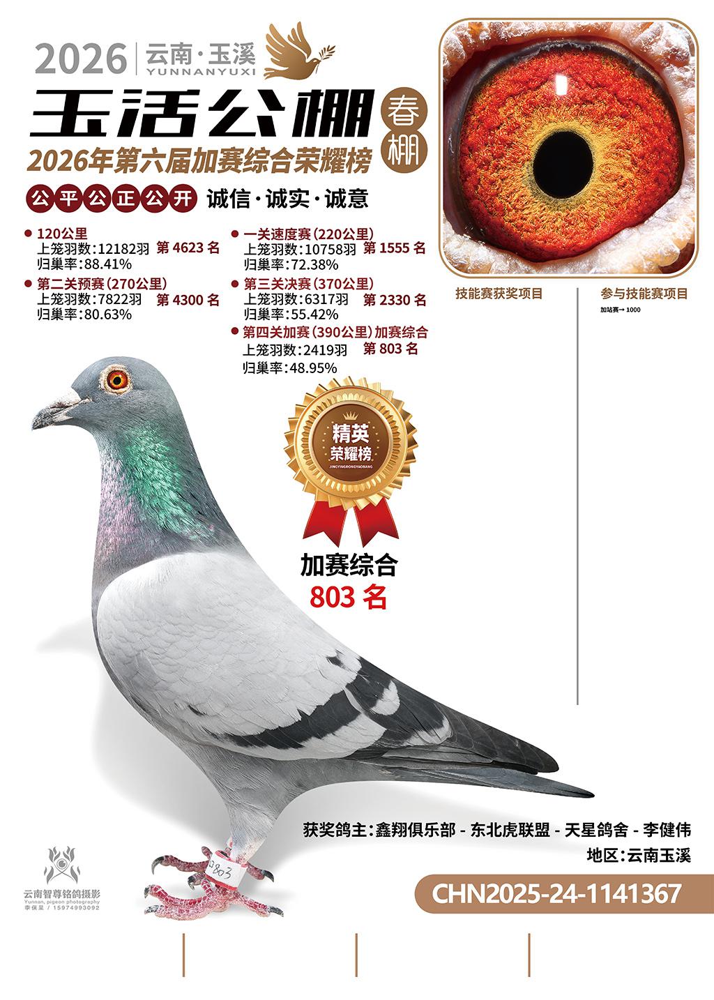 位置:云南玉活公棚春棚2026获奖鸽展示\加赛综合803名