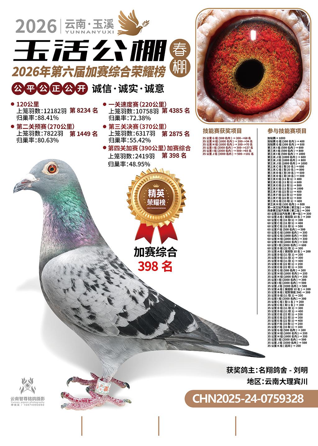 位置:云南玉活公棚春棚2026获奖鸽展示\加赛综合398名