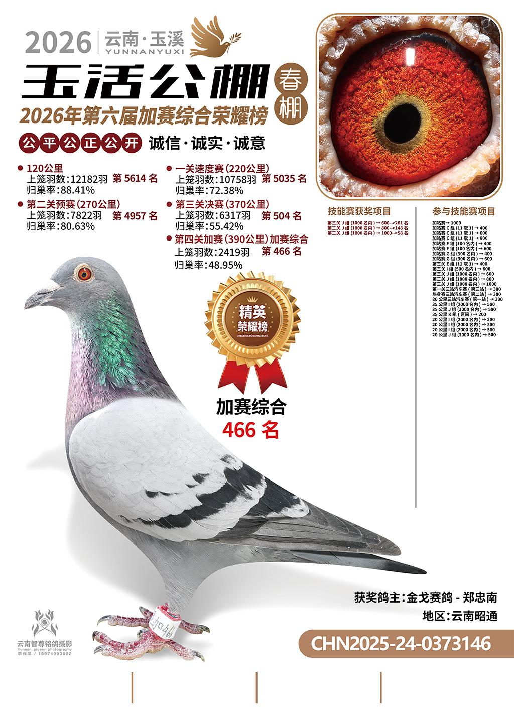 位置:云南玉活公棚春棚2026获奖鸽展示\加赛综合466名