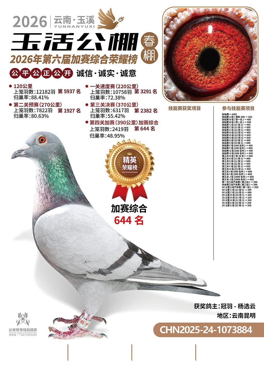 位置:云南玉活公棚春棚2026获奖鸽展示\加赛综合644名