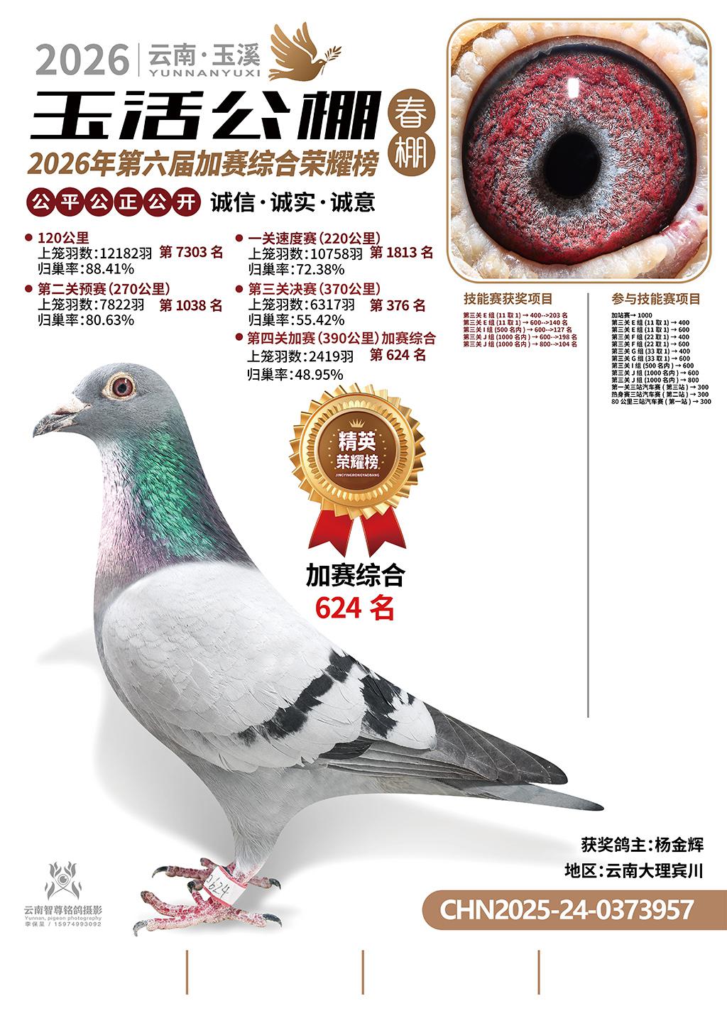 位置:云南玉活公棚春棚2026获奖鸽展示\加赛综合624名