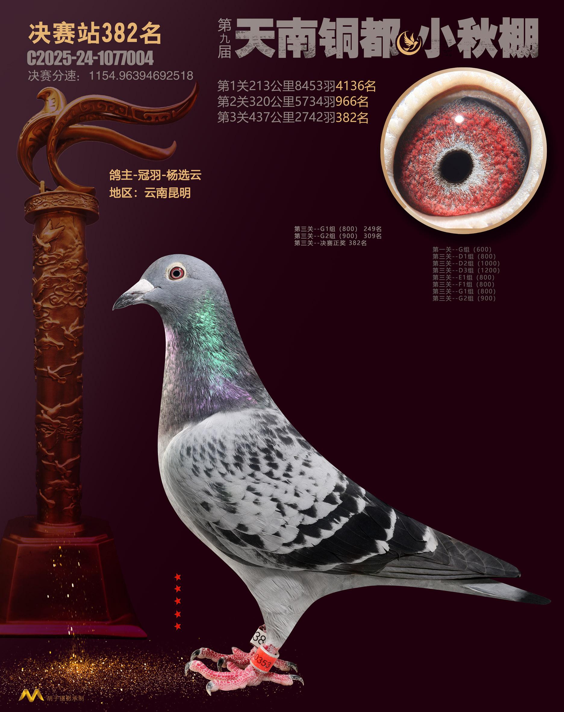 位置:云南天南铜都小棚(小秋棚)2025获奖鸽展示\决赛站382名