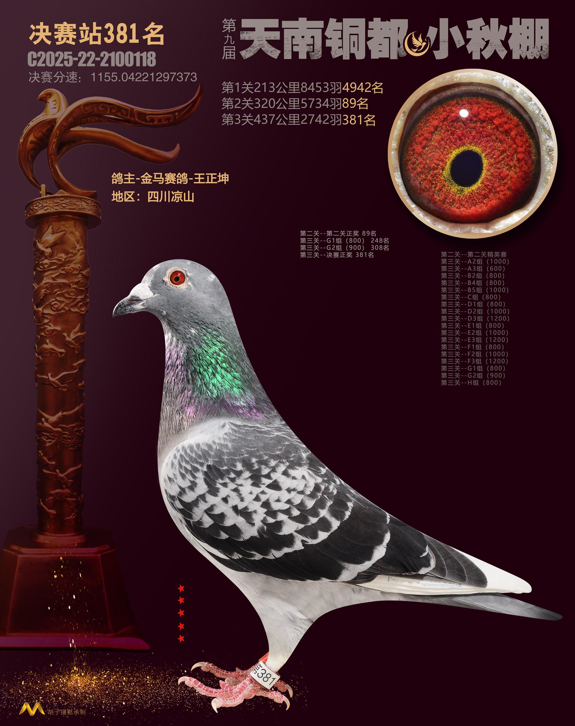 位置:云南天南铜都小棚(小秋棚)2025获奖鸽展示\决赛站381名