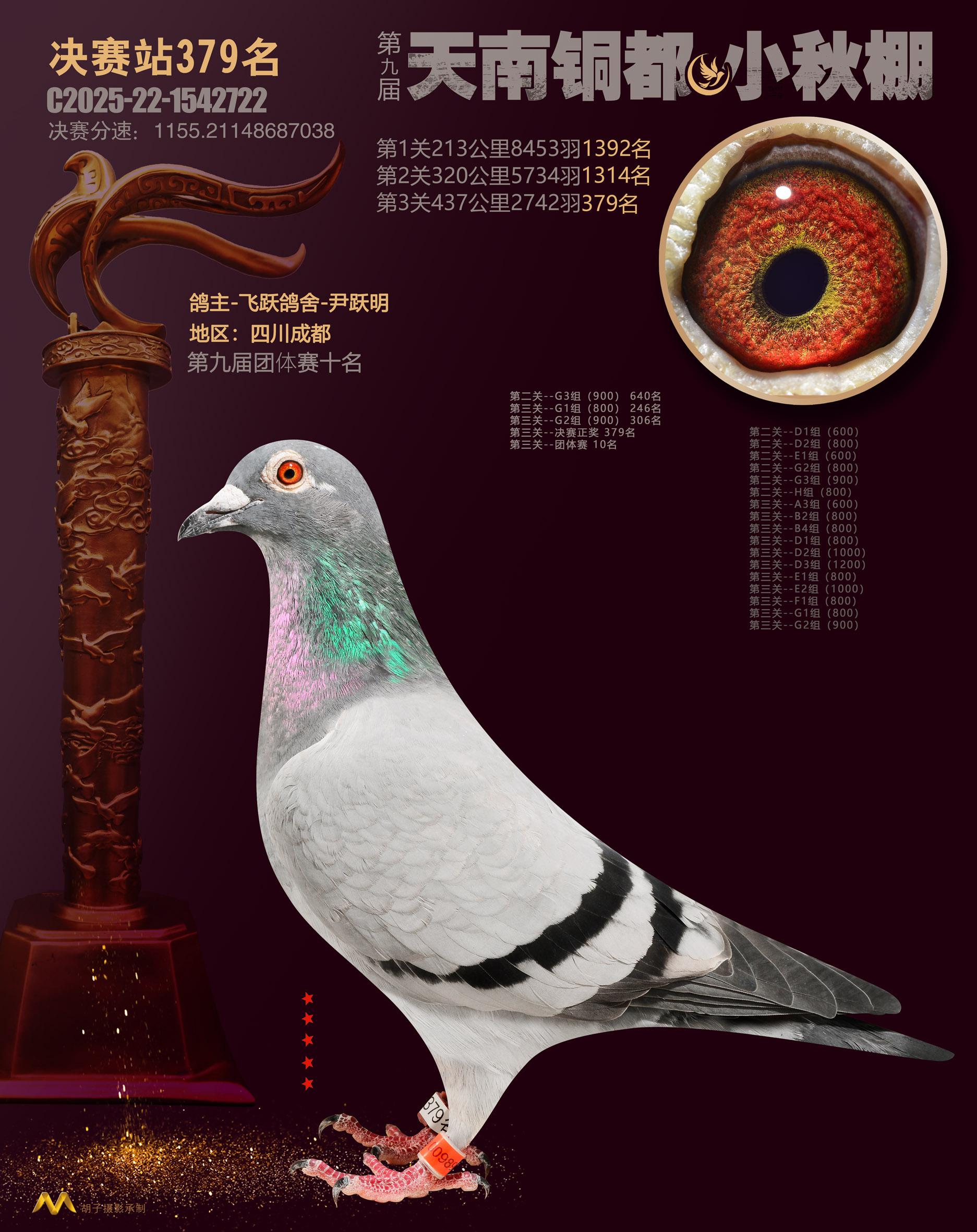 位置:云南天南铜都小棚(小秋棚)2025获奖鸽展示\决赛站379名