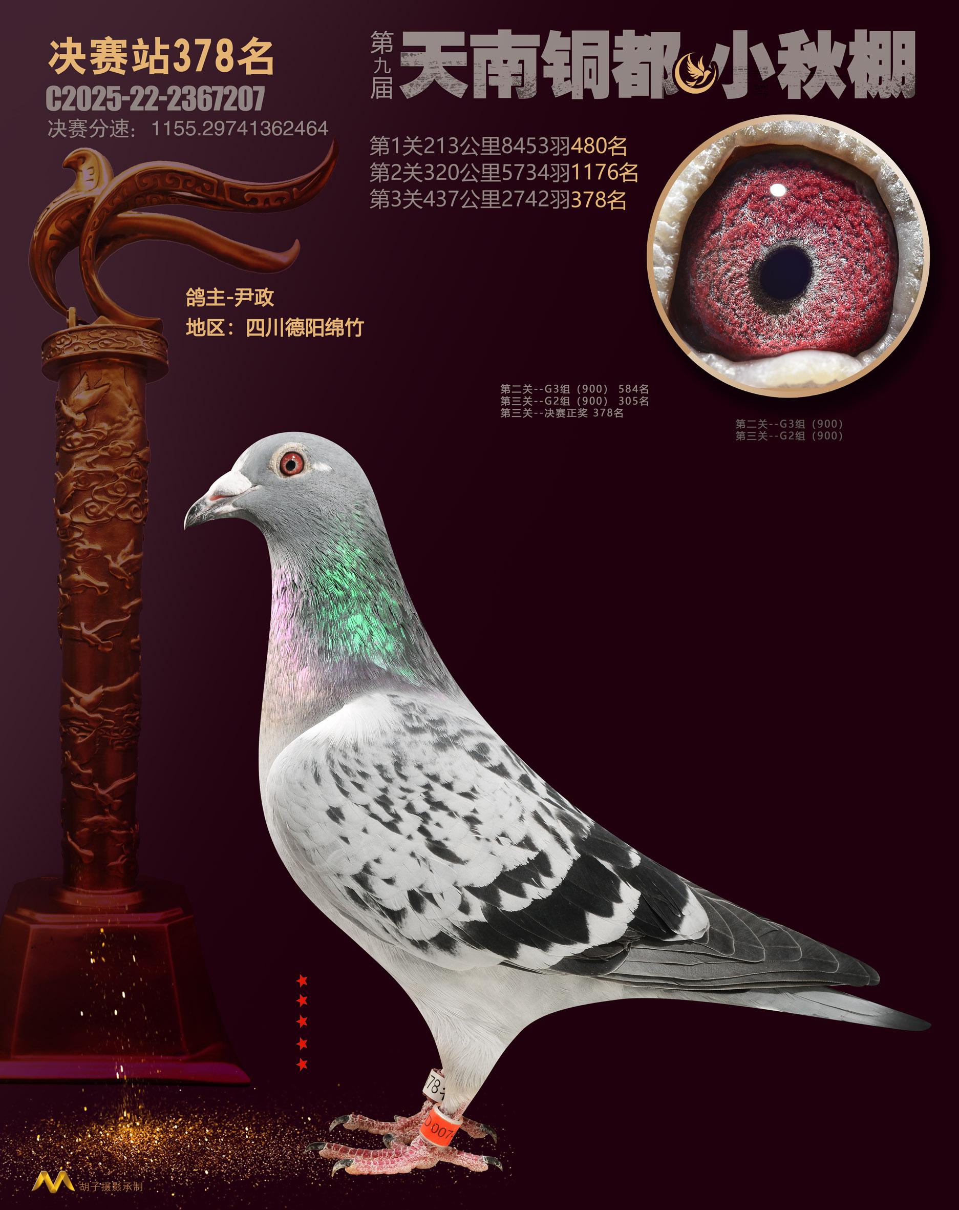 位置:云南天南铜都小棚(小秋棚)2025获奖鸽展示\决赛站378名
