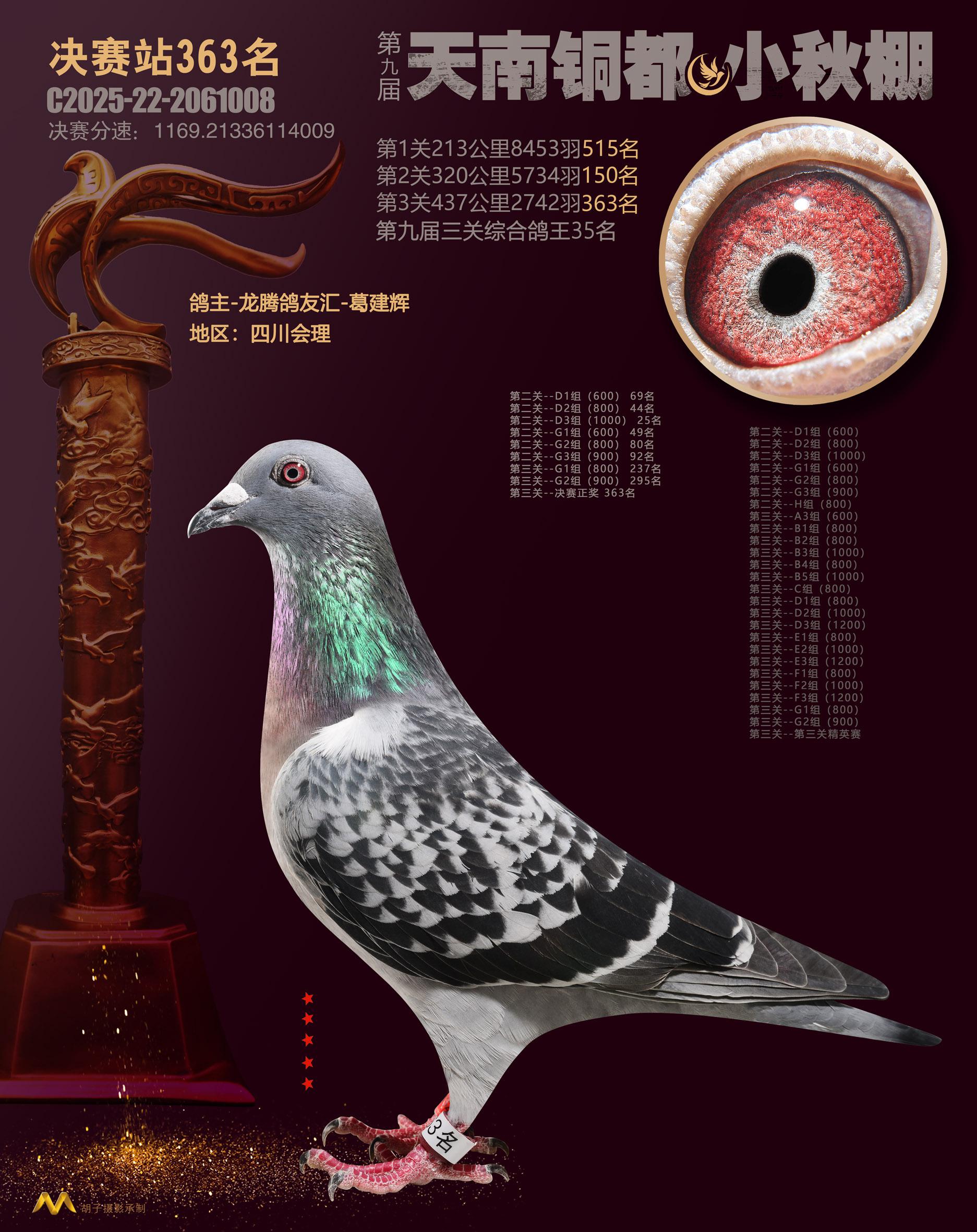 位置:云南天南铜都小棚(小秋棚)2025获奖鸽展示\决赛站363名