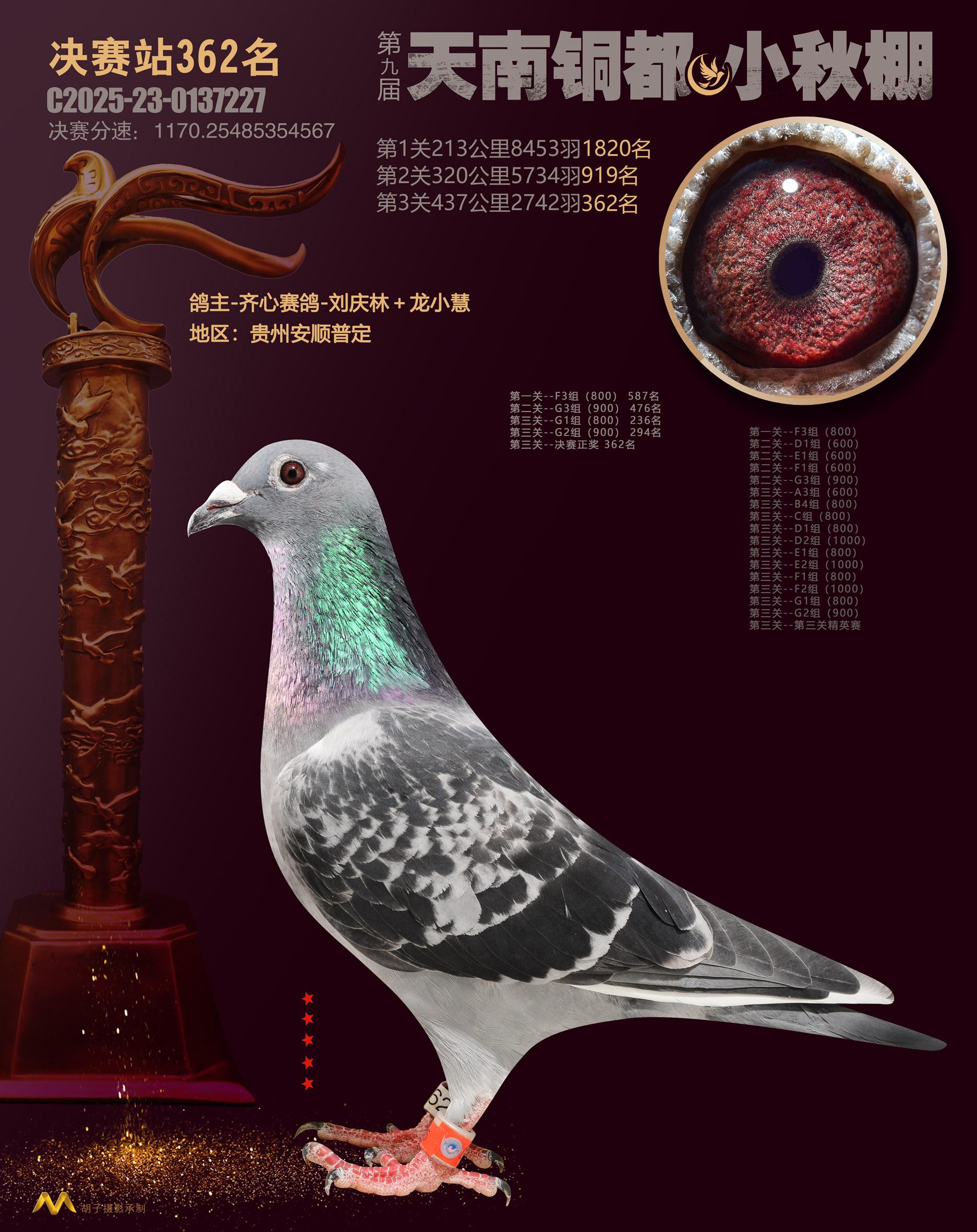 位置:云南天南铜都小棚(小秋棚)2025获奖鸽展示\决赛站362名