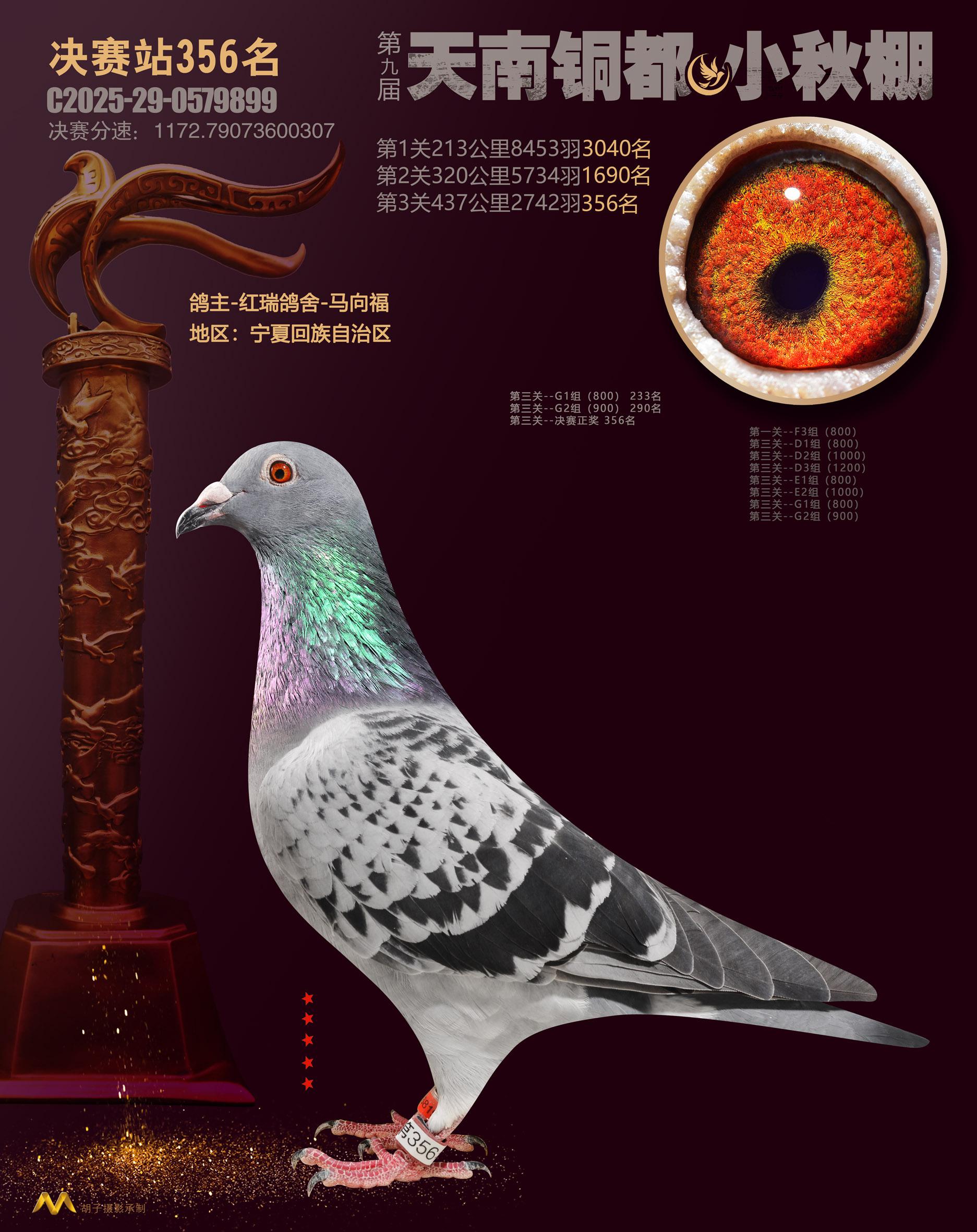 位置:云南天南铜都小棚(小秋棚)2025获奖鸽展示\决赛站356名