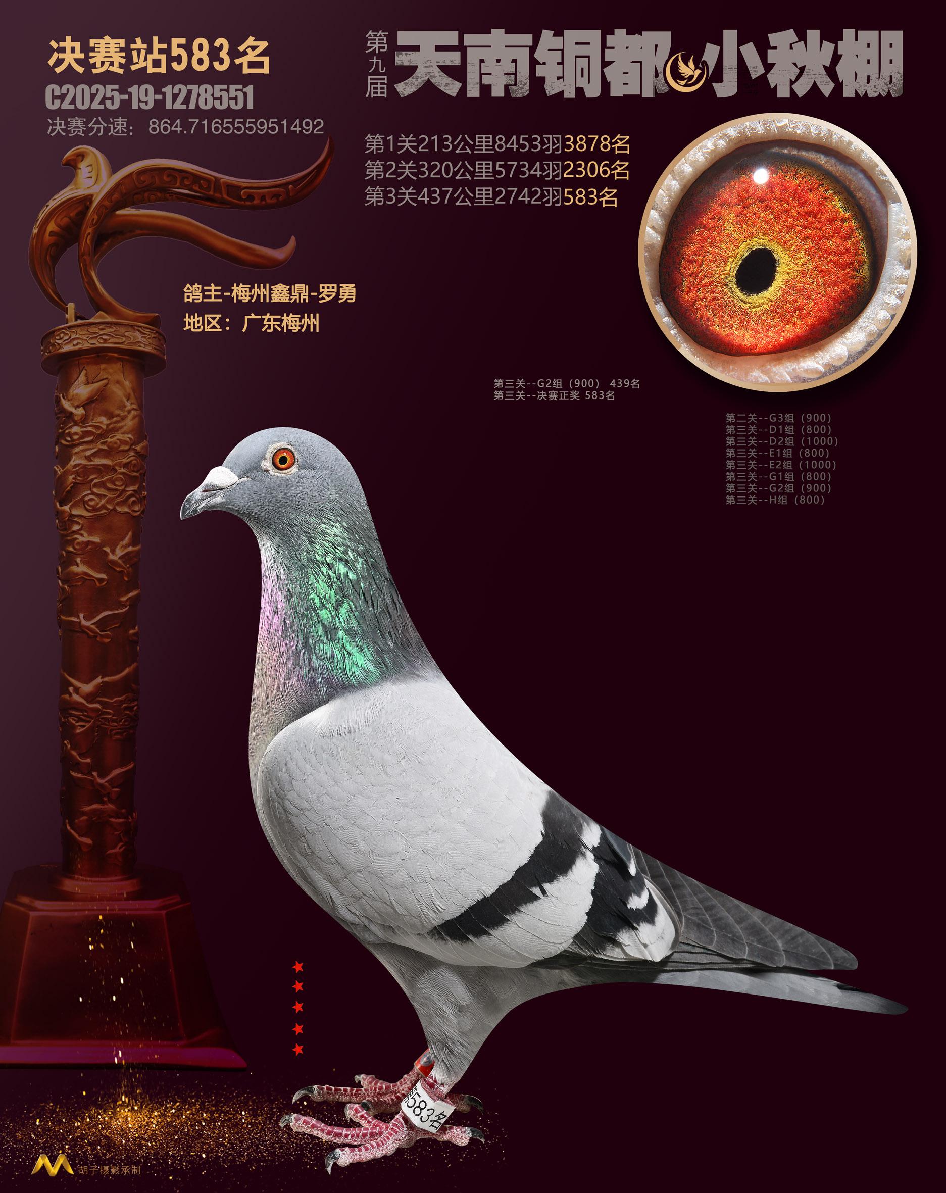 位置:云南天南铜都小棚(小秋棚)2025获奖鸽展示\决赛站583名