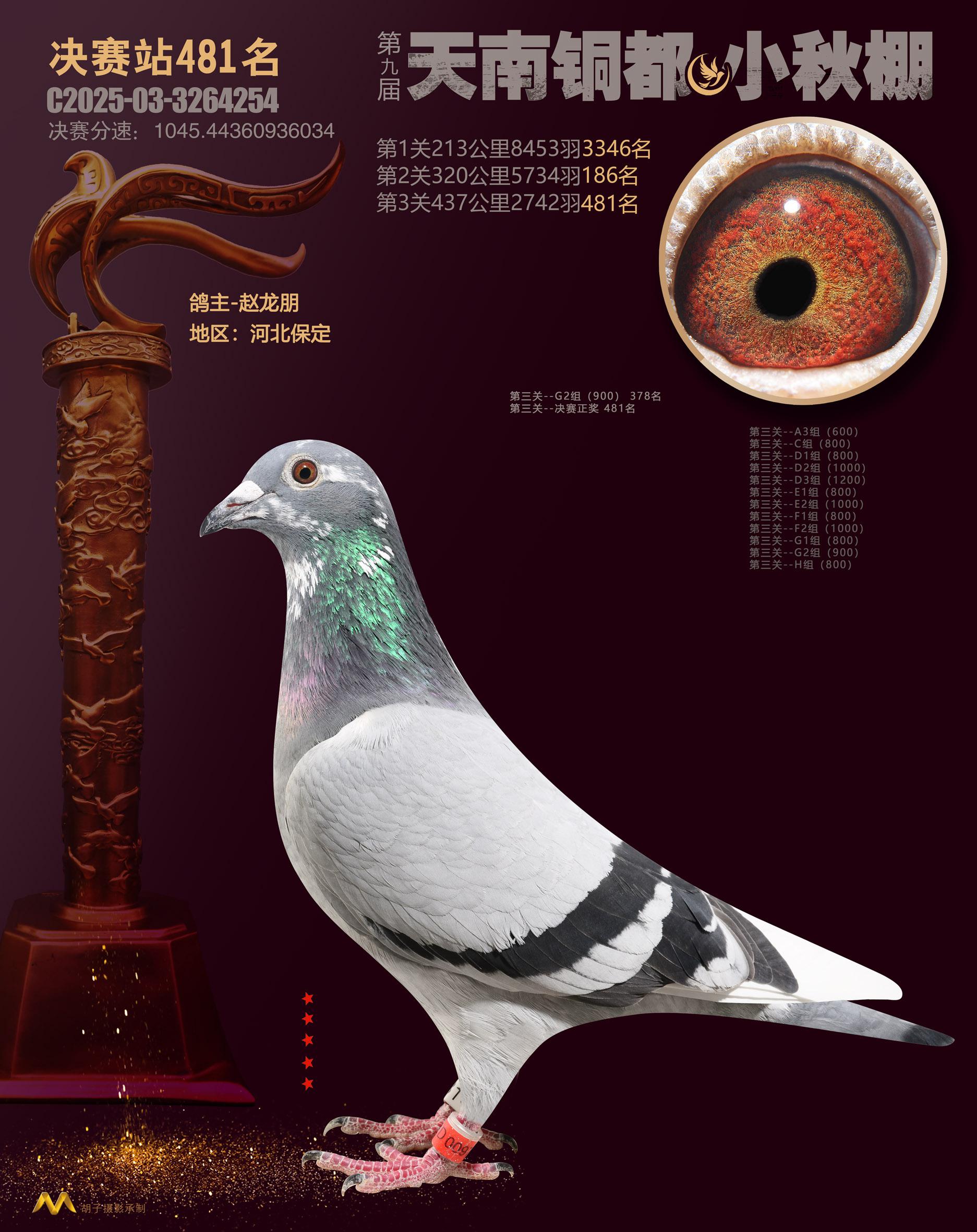 位置:云南天南铜都小棚(小秋棚)2025获奖鸽展示\决赛站481名
