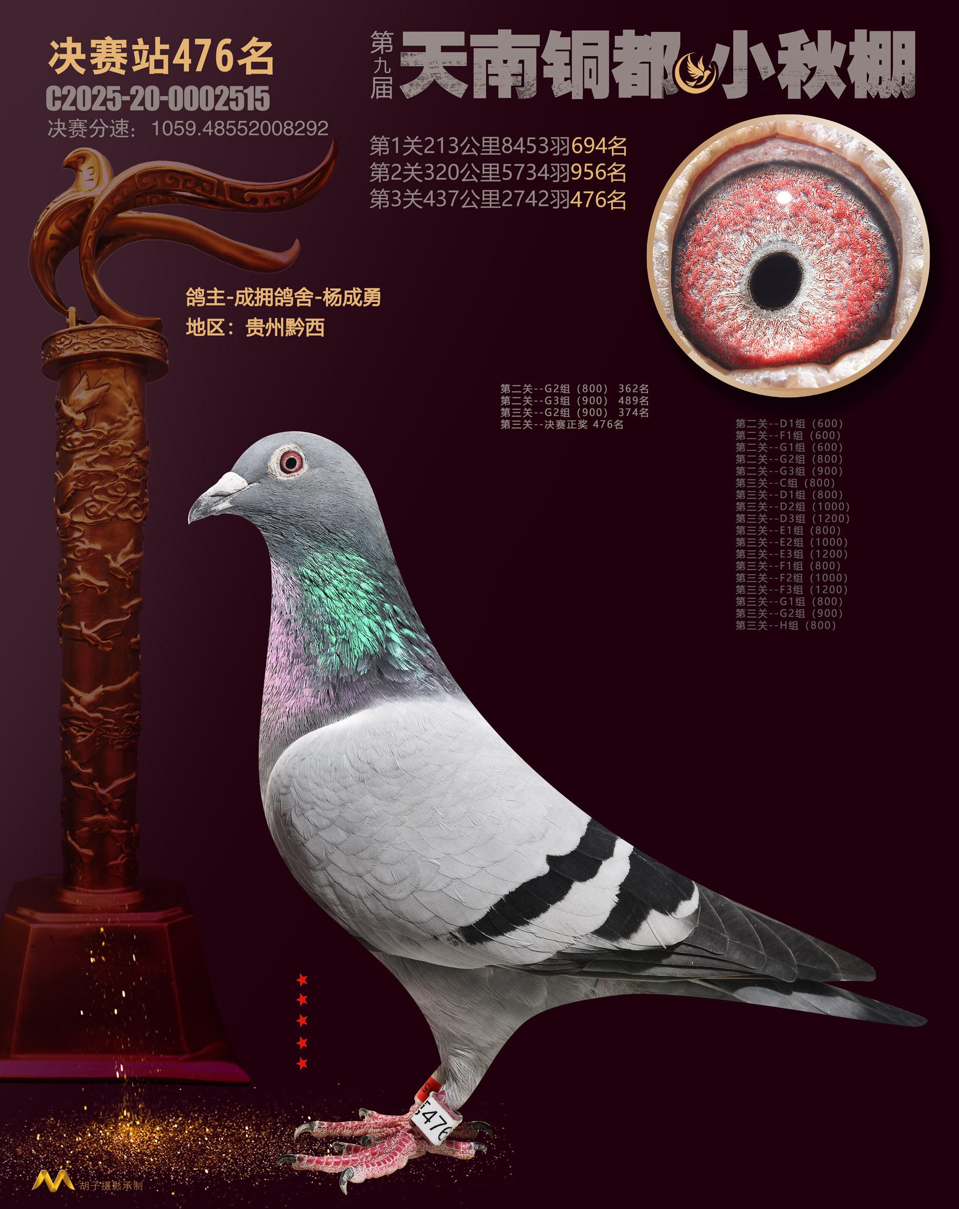 位置:云南天南铜都小棚(小秋棚)2025获奖鸽展示\决赛站476名