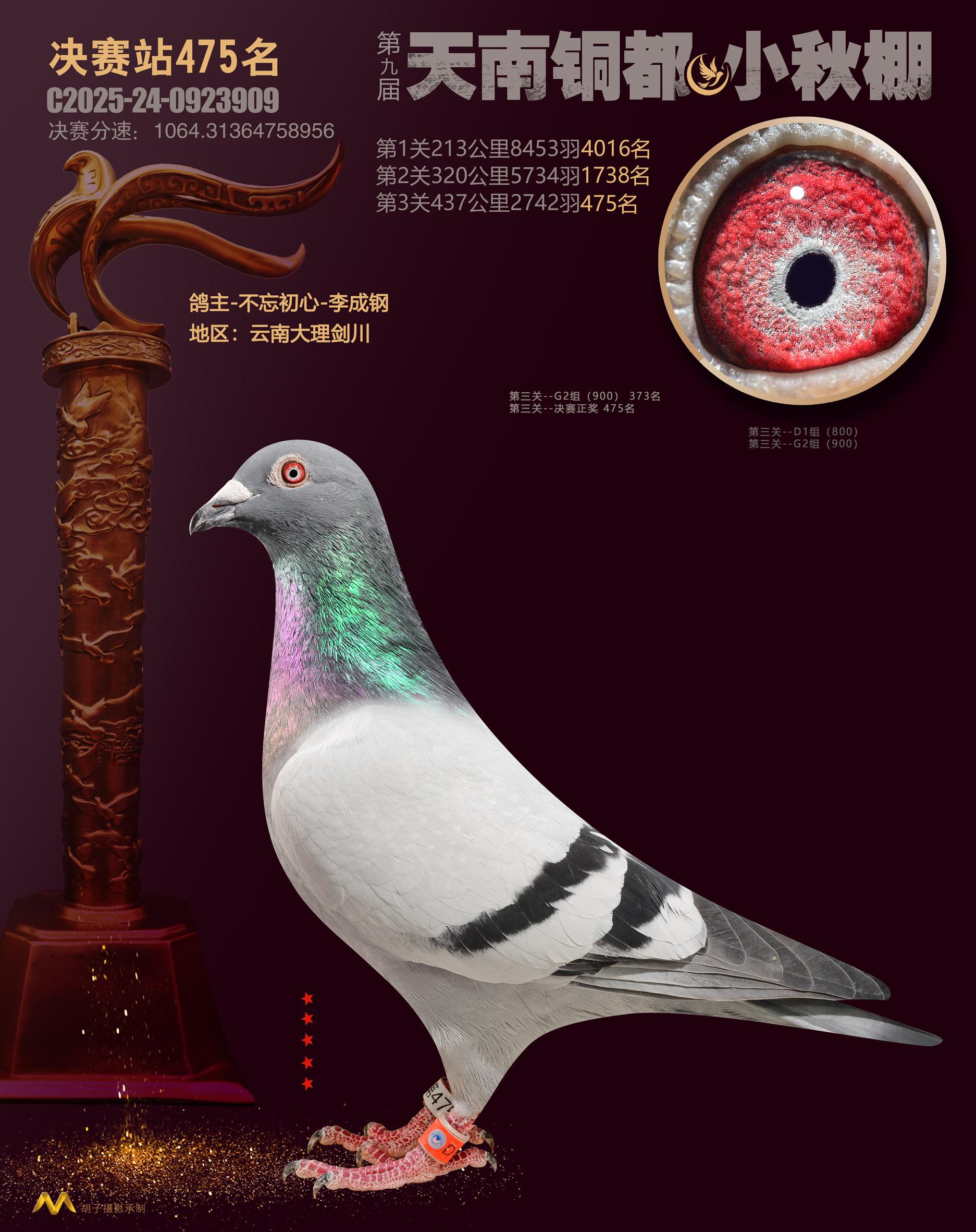 位置:云南天南铜都小棚(小秋棚)2025获奖鸽展示\决赛站475名
