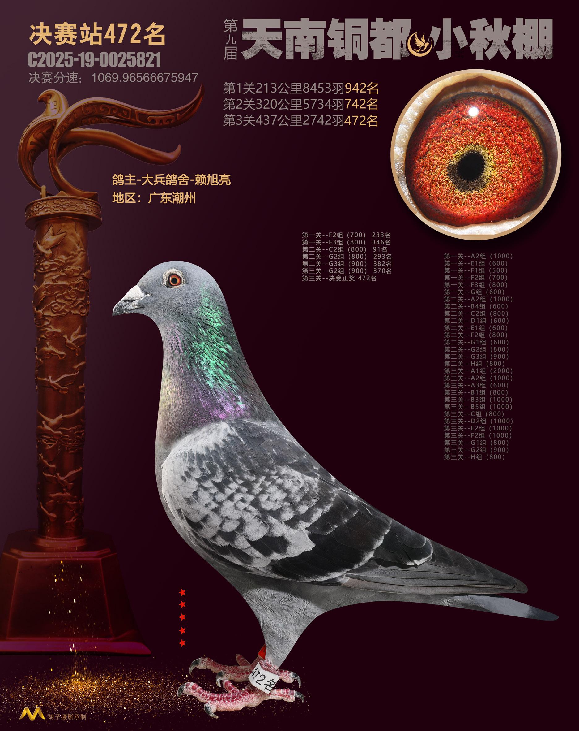 位置:云南天南铜都小棚(小秋棚)2025获奖鸽展示\决赛站472名
