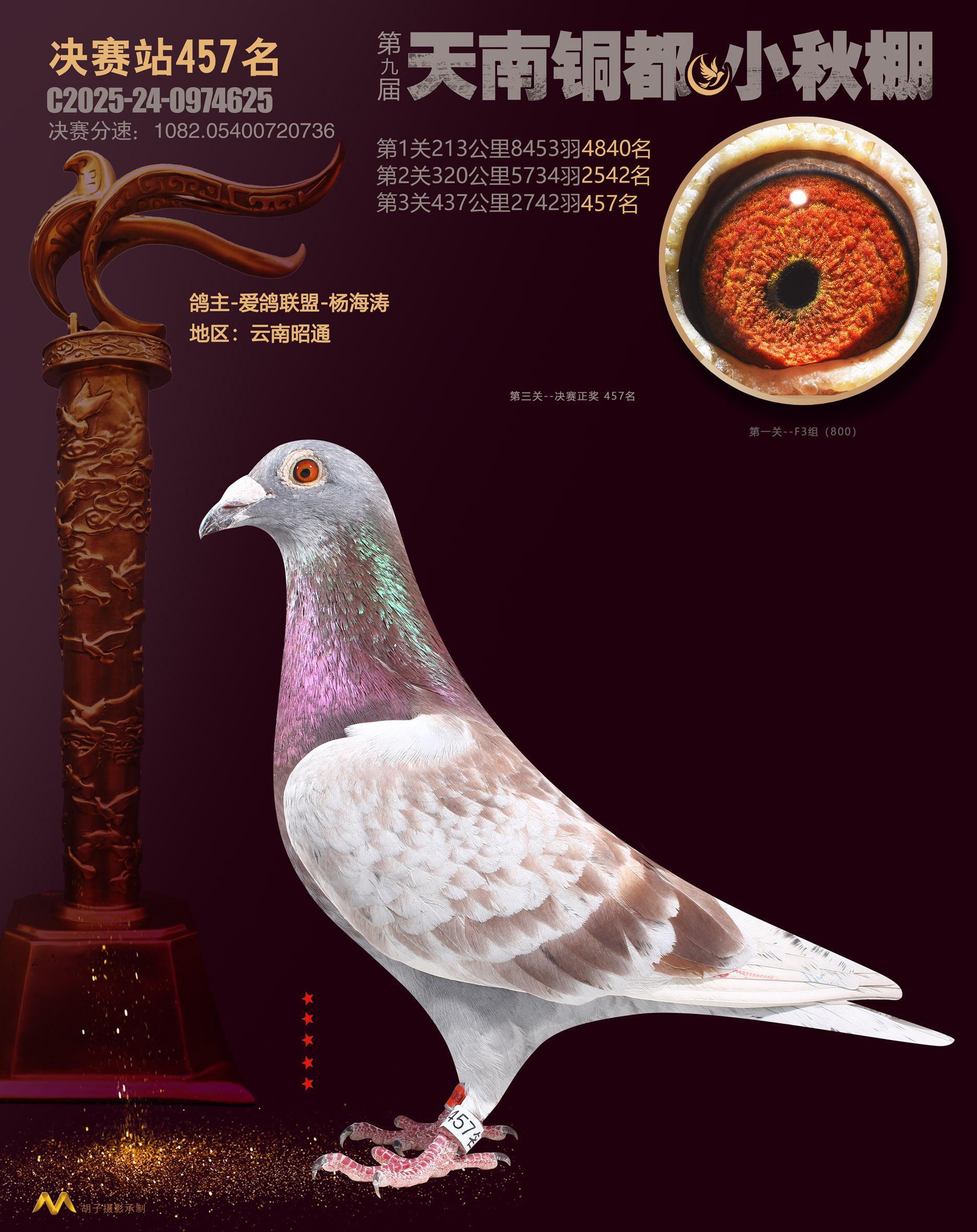 位置:云南天南铜都小棚(小秋棚)2025获奖鸽展示\决赛站457名